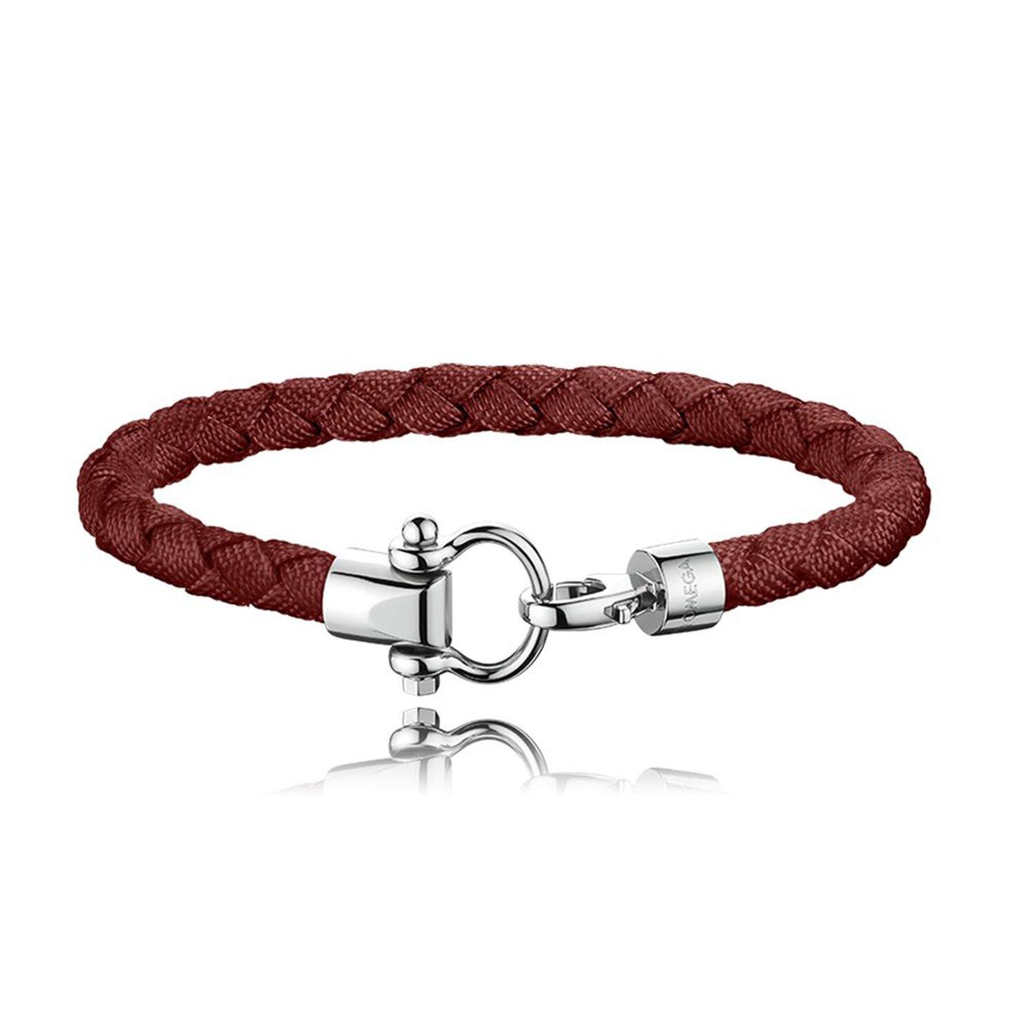 Casual, colourful, and easy to wear, this OMEGA Sailing Bracelet is inspired by the DNA of the brand. Crafted with stainless steel and terracotta braided nylon, become part of the OMEGA universe with this creative accessory.