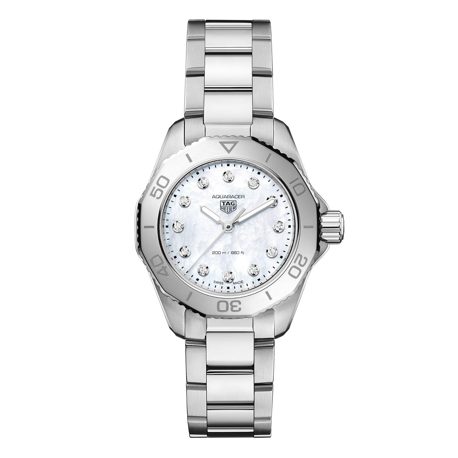 Showcasing elegance and high-performance, this TAG Heuer Aquaracer Professional 200 30mm Diamond Ladies Watch is crafted to deliver excellence in every detail. Designed with a mother of pearl dial enhanced with a stainless steel bracelet, this luxurious timepiece is both delicate and fierce.