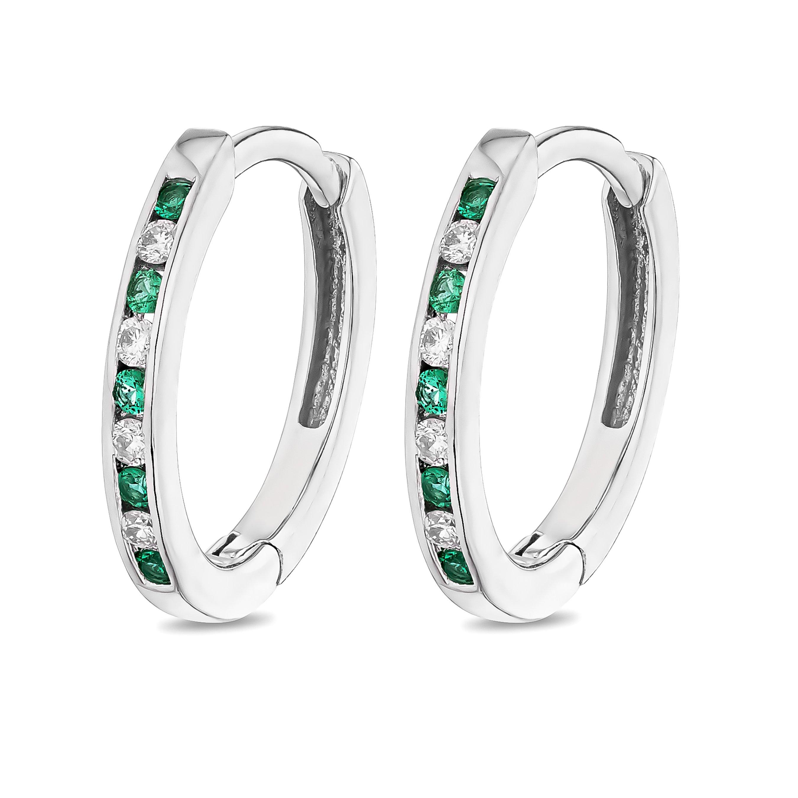 Crafted with precision and an eye for timeless beauty, elevate your elegance with these 9ct White Gold Diamond Emerald Huggie Hoop Earrings. Adorned with hand-selected round brilliant diamonds and vibrant emerald gemstones, the white gold huggie design offers a sleek embrace around the earlobe.