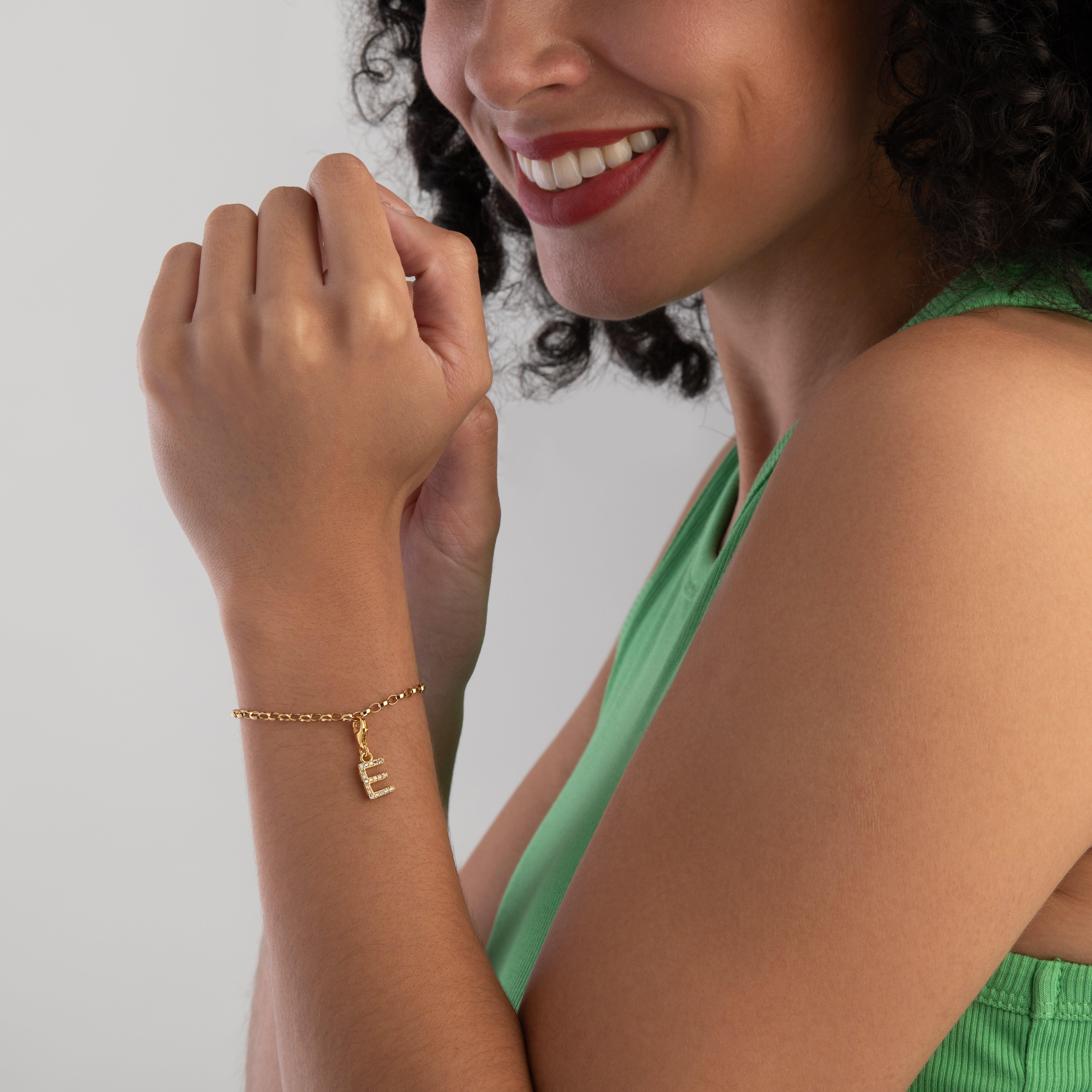 Create a look that is unique to you with this Thomas Sabo 18ct Gold Plated Cubic Zirconia Initial E Charm. Crafted in 18ct gold plated sterling silver, adorning a cubic zirconia embellishment, this precious design makes the perfect, sentimental gift.