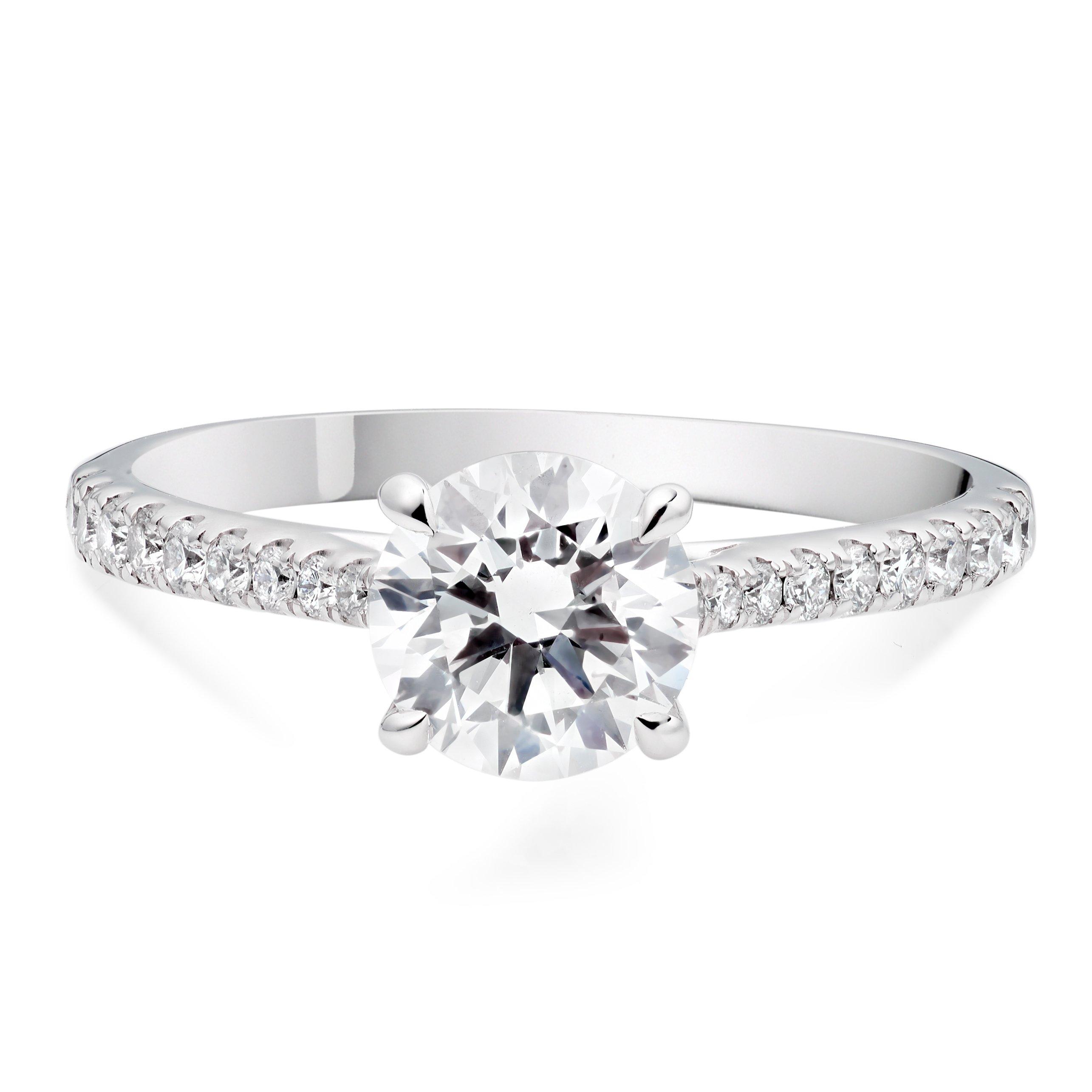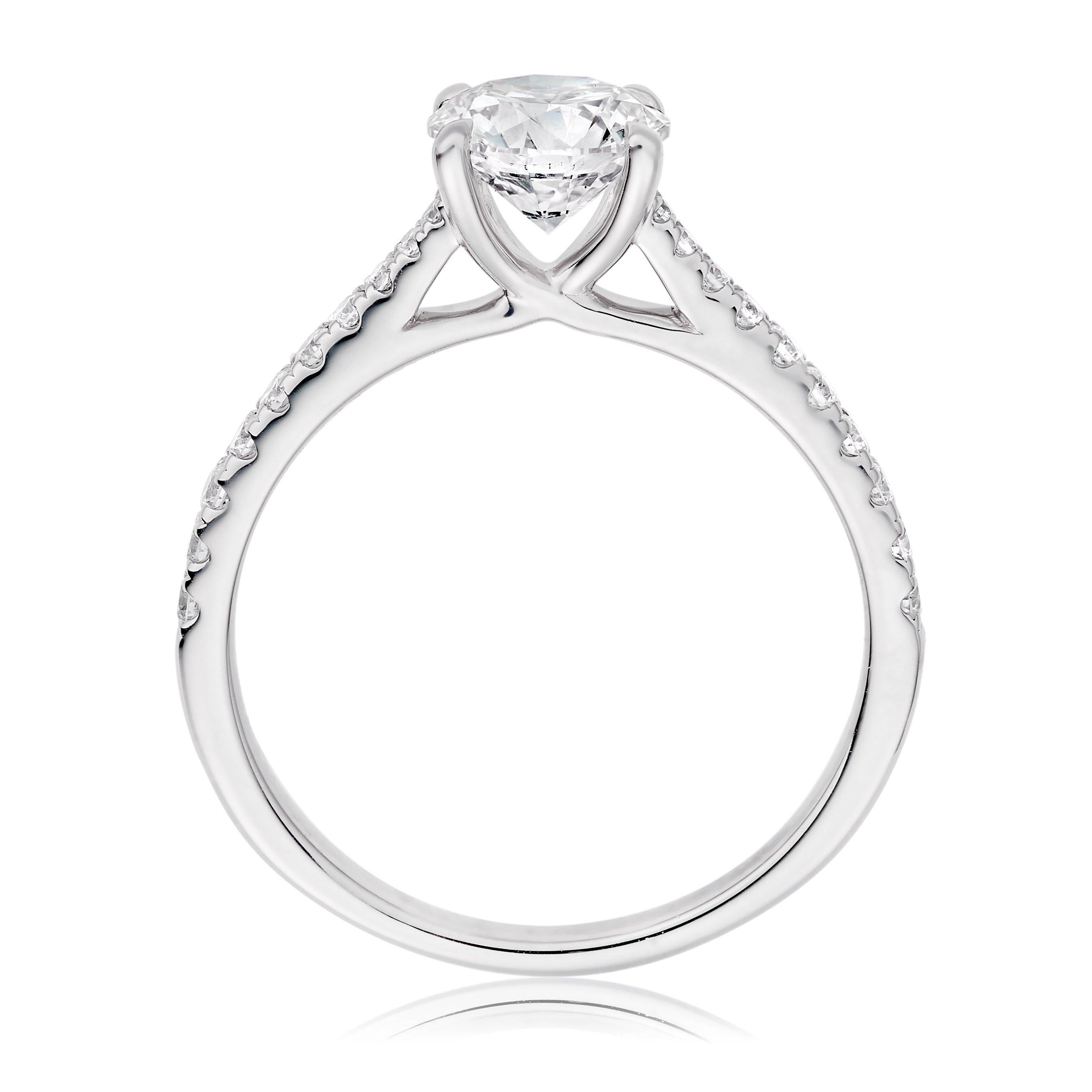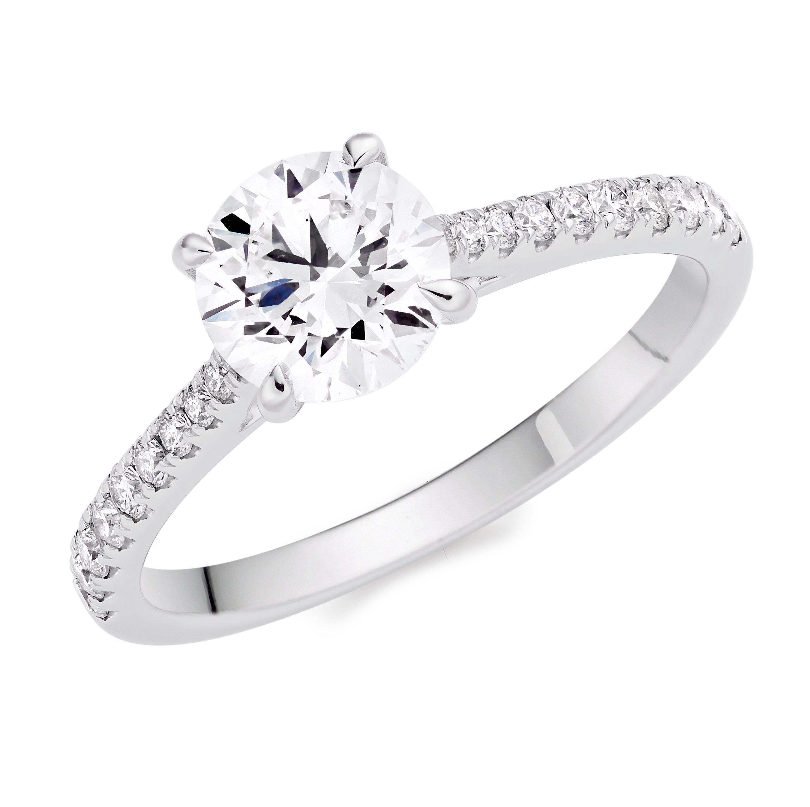 Capture their heart and love forever with this Once Platinum Diamond Solitaire Engagement Ring, showcasing a breathtaking centre diamond, of which its beauty is further accentuated by a dazzling display of shoulder set diamonds for the ultimate fire and brilliance.