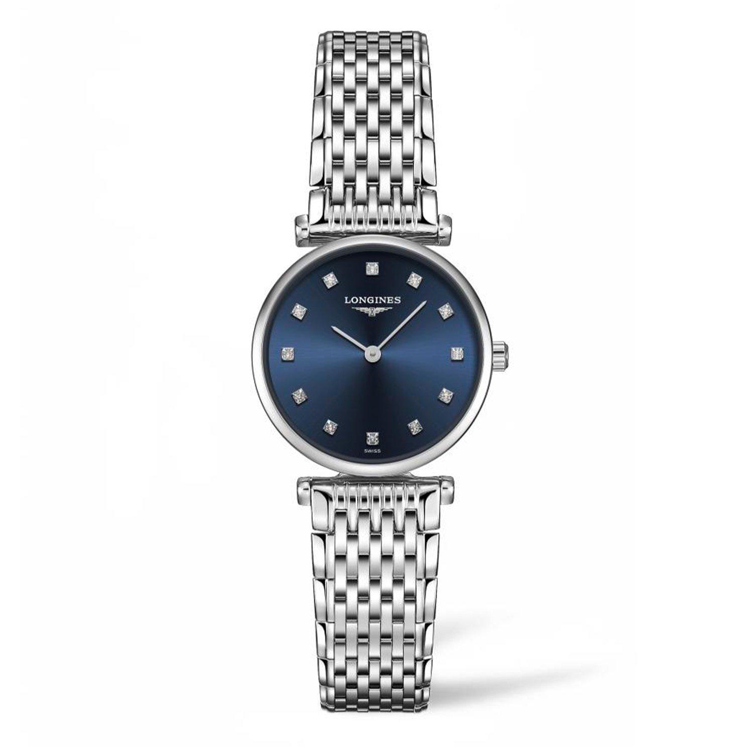 Designed with a luscious blue dial with elegant diamond detailing, this Longines La Grande Classique 24mm Diamond Ladies Watch is a sophisticated timepiece that effortlessly takes your look from day to night.