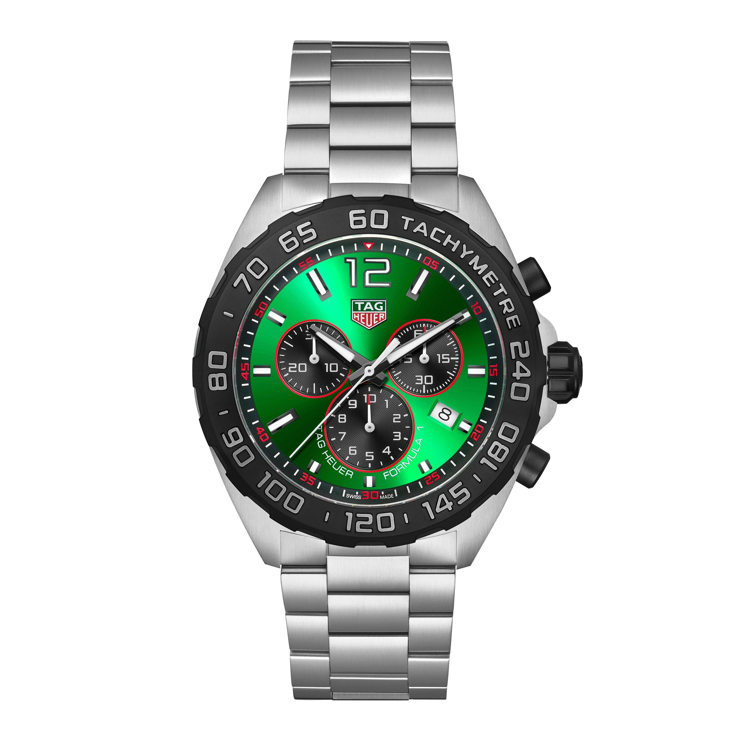 Distinct in colour, unmistakeable on the racetrack, this TAG Heuer Formula 1 Chronograph 43mm Men’s Watch is designed for thrill-seekers and those who love to push the boundaries. Taking centre stage with a vibrant green dial, this timepiece obtains exceptional functionality and brilliantly fuses strength and versatility together.