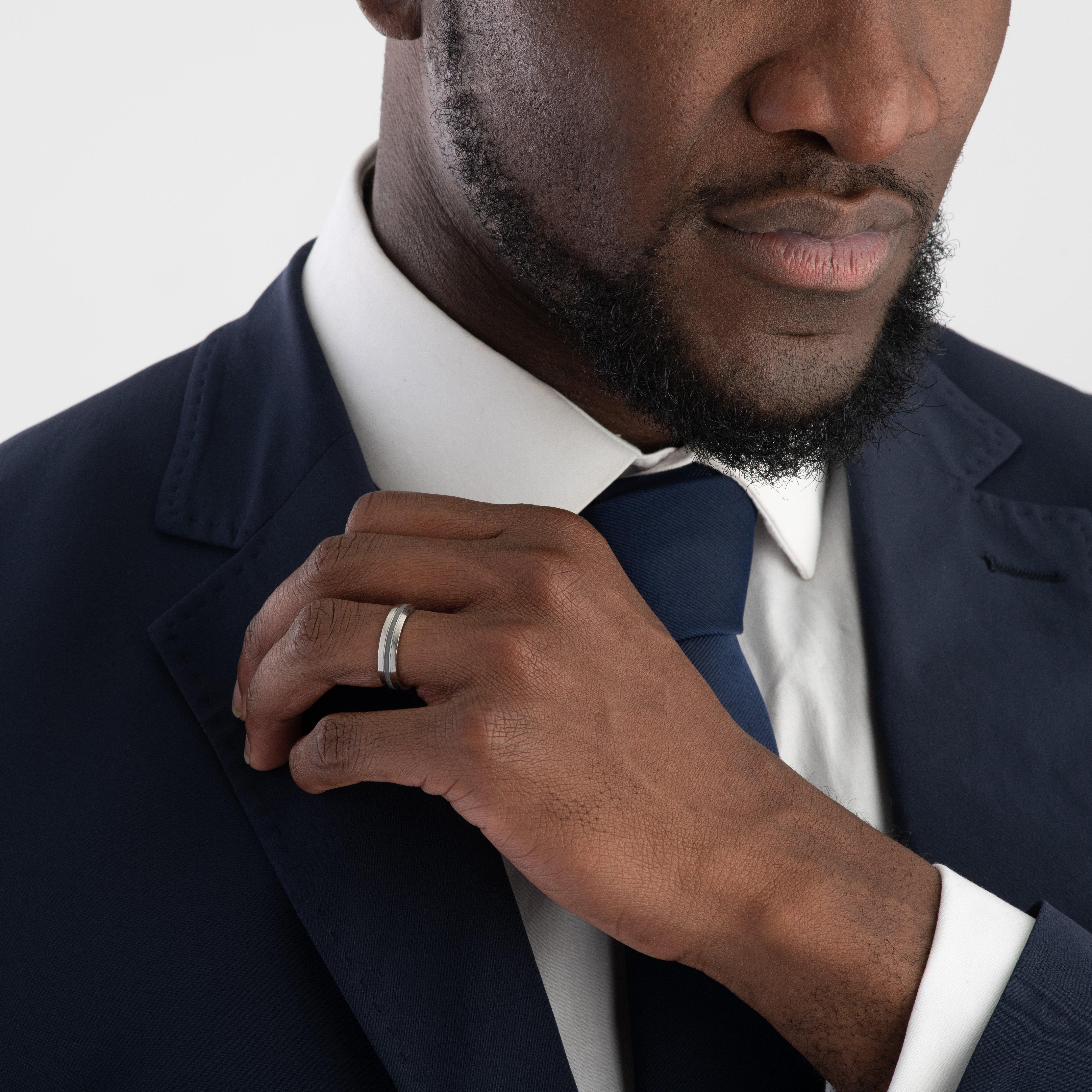 Embrace modern elegance with this Platinum Grey Ceramic 5mm Men’s Wedding Ring. A bold symbol of your love and commitment, this sleek and sophisticated design blends tradition with contemporary design details.