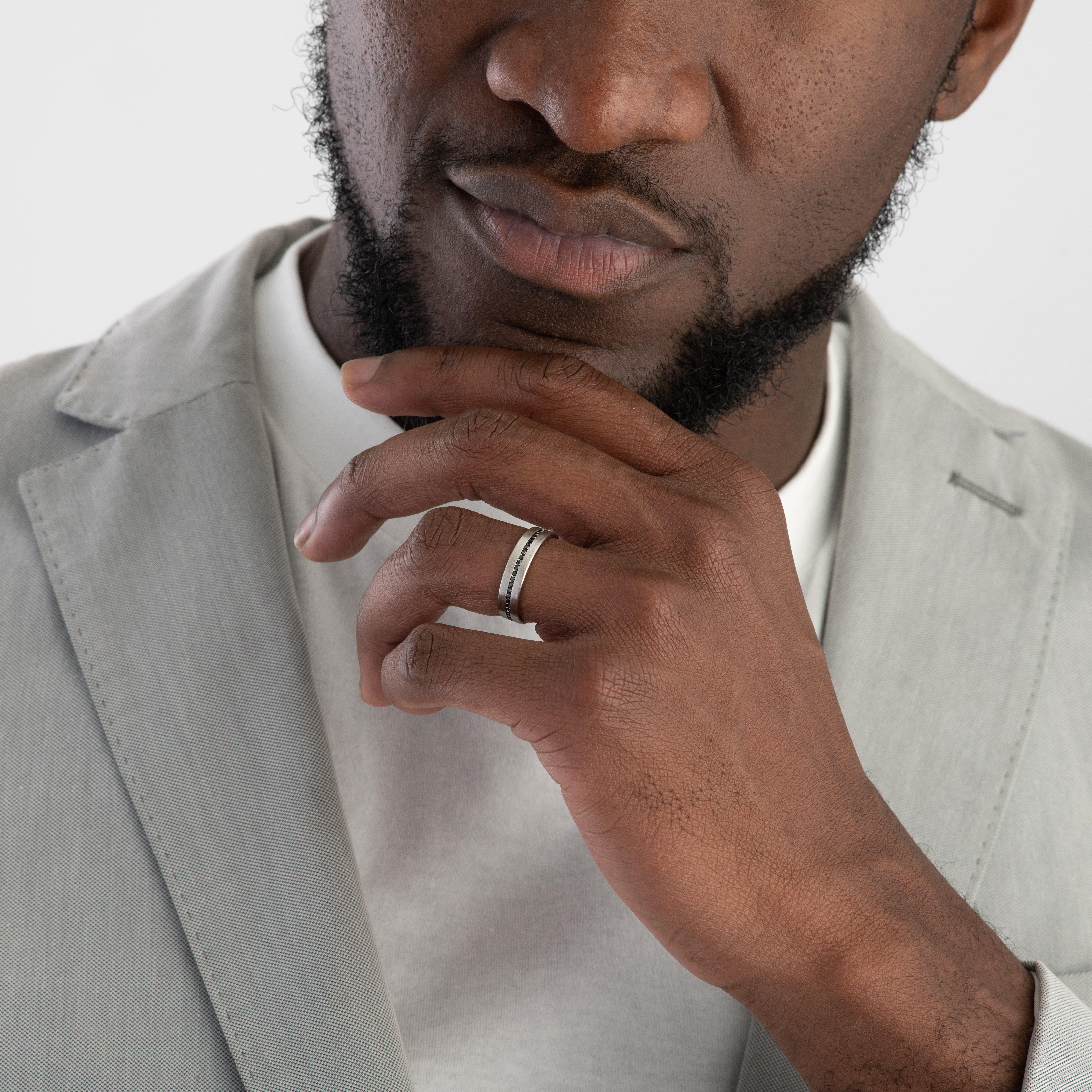 Elevate your commitment with this Platinum Black Diamond Men’s Wedding Ring. Crafted with precision, fusing strength and sophistication to create a bold design that combines the enduring beauty of platinum with the mystique of black diamonds.