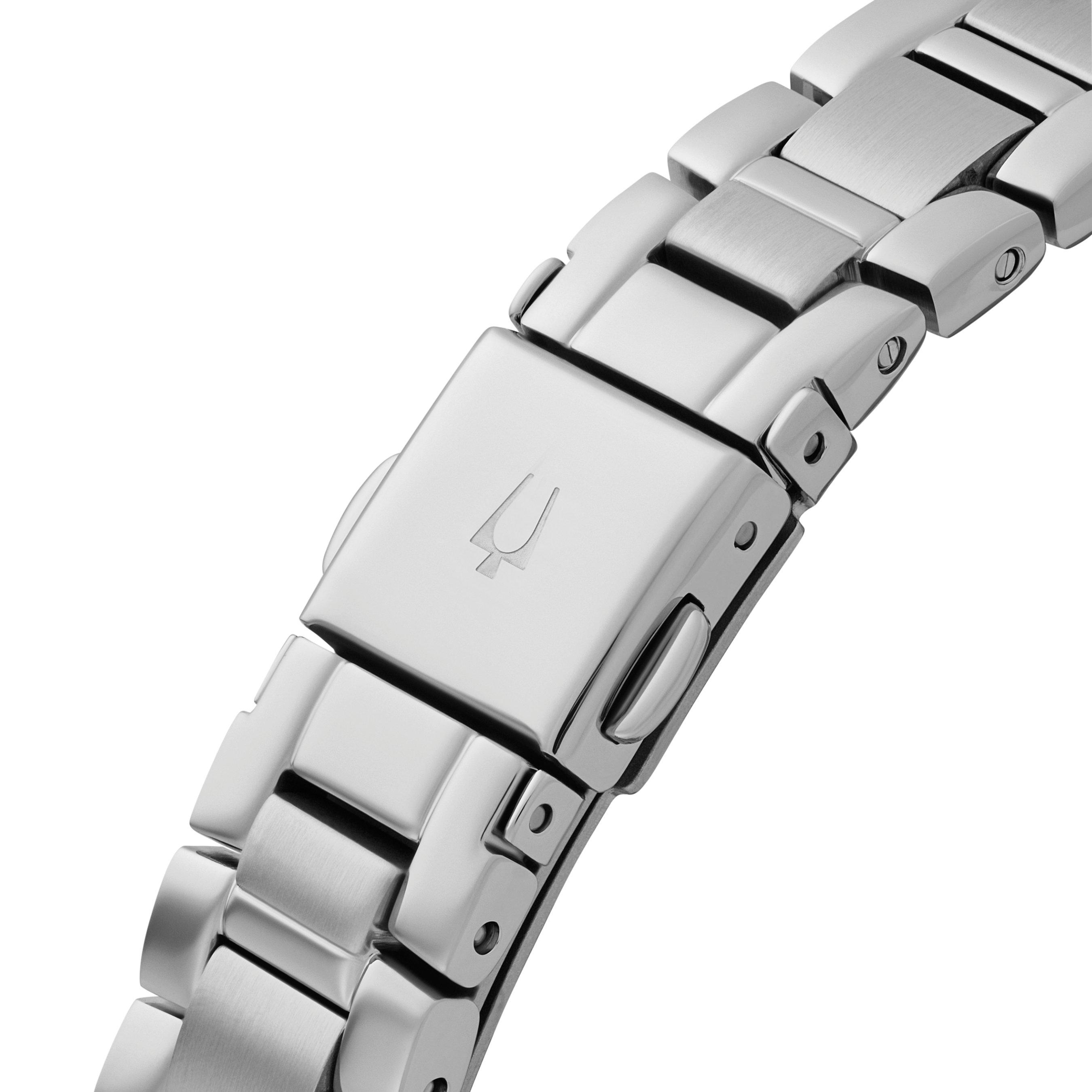 - Presented on a stainless steel bracelet fastened with a deployment buckle
