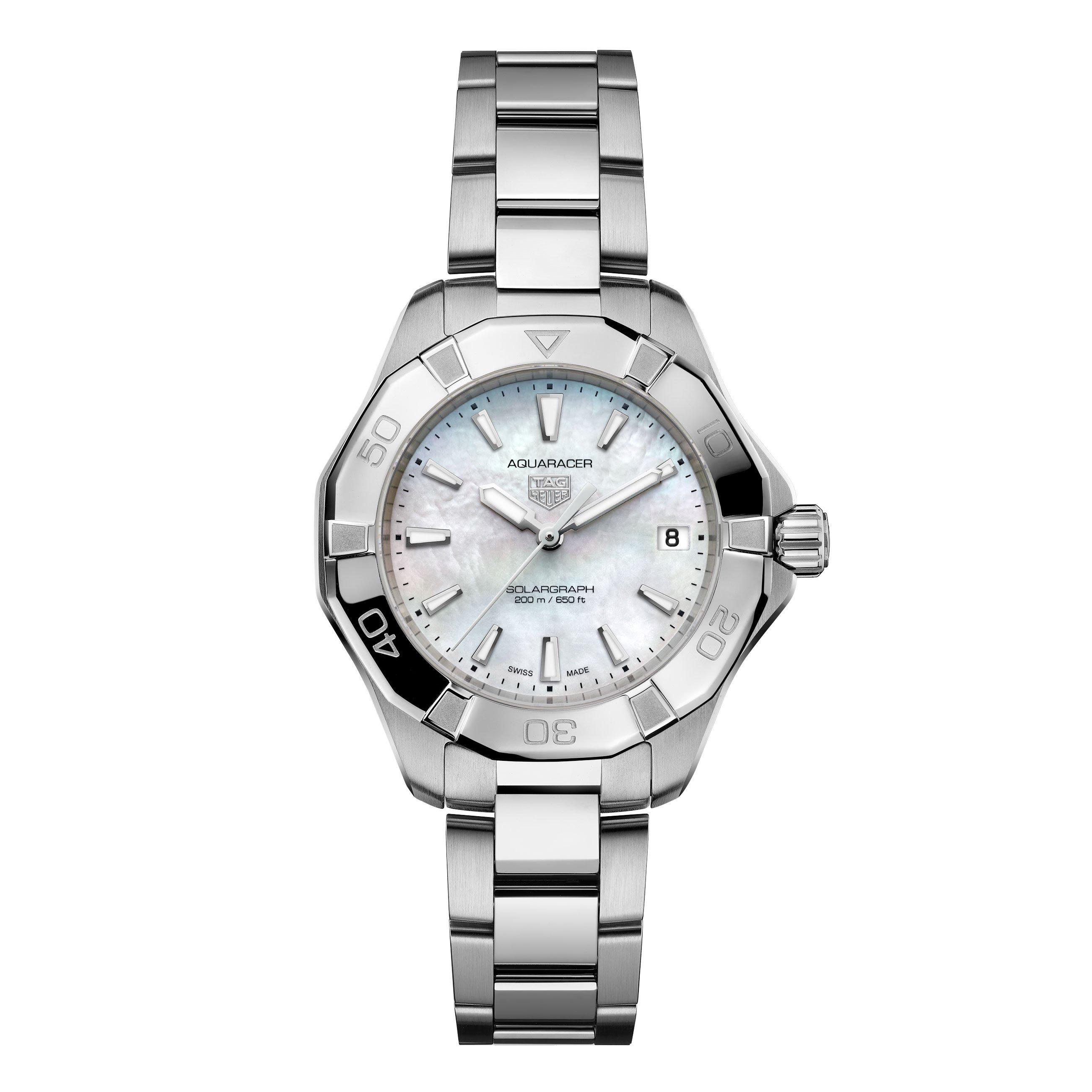 Emitting an alluring charm, this TAG Heuer Aquaracer Professional 200 Solargraph 34mm Ladies Watch introduces a mother of pearl dial, a first for the Solargraph series. Retaining it’s iconic elegance and enchanting beauty, this timepiece is a testament to the brands cutting-edge craftsmanship.