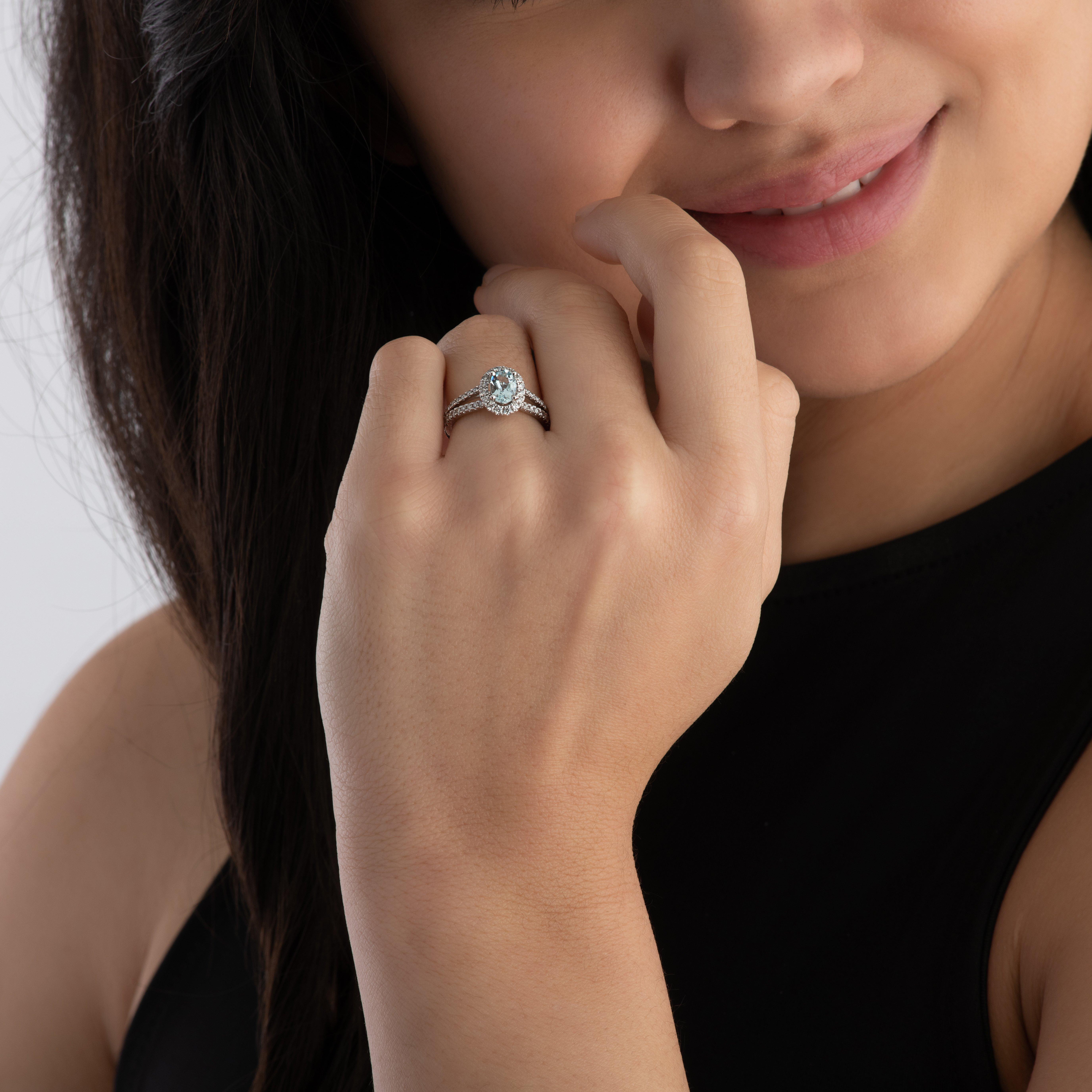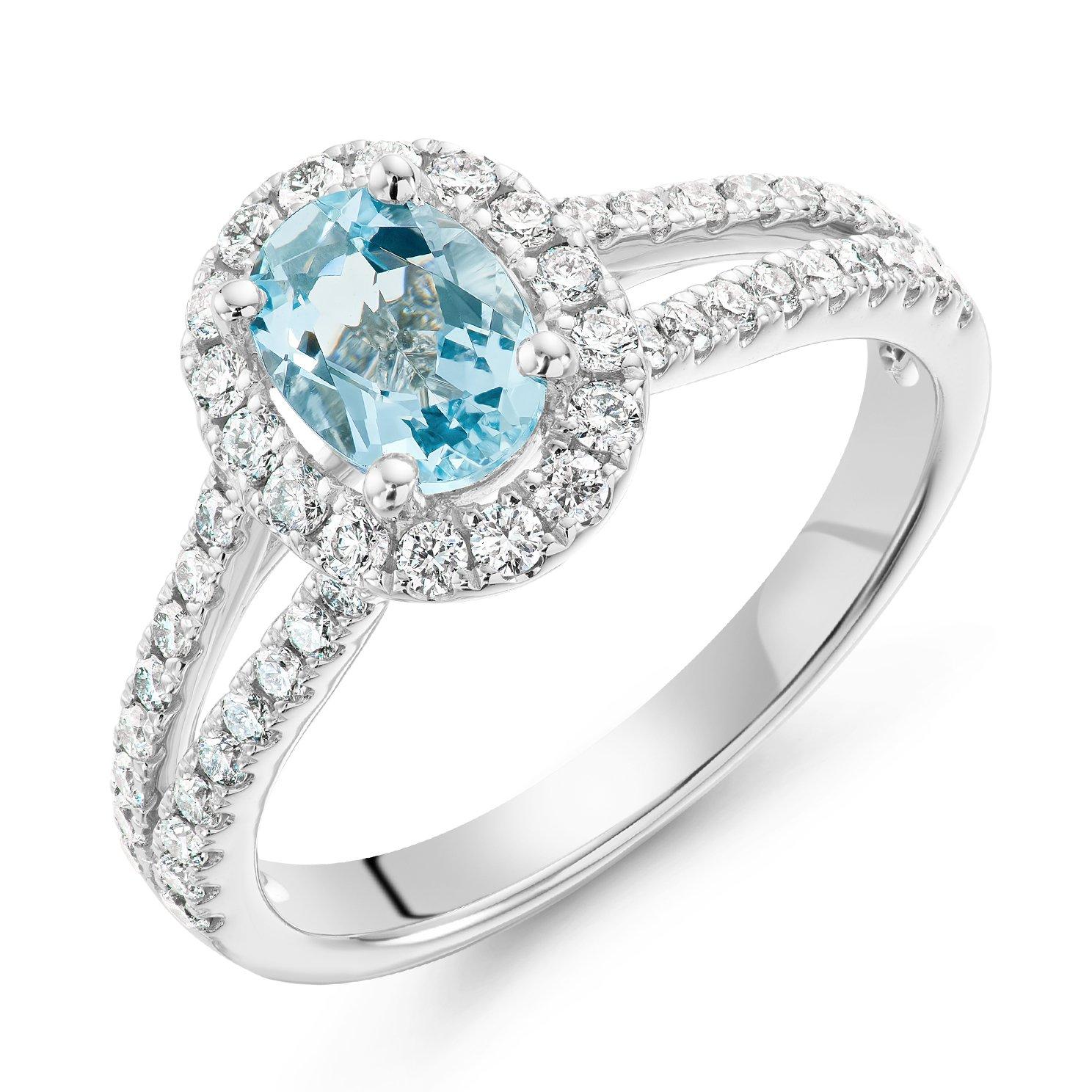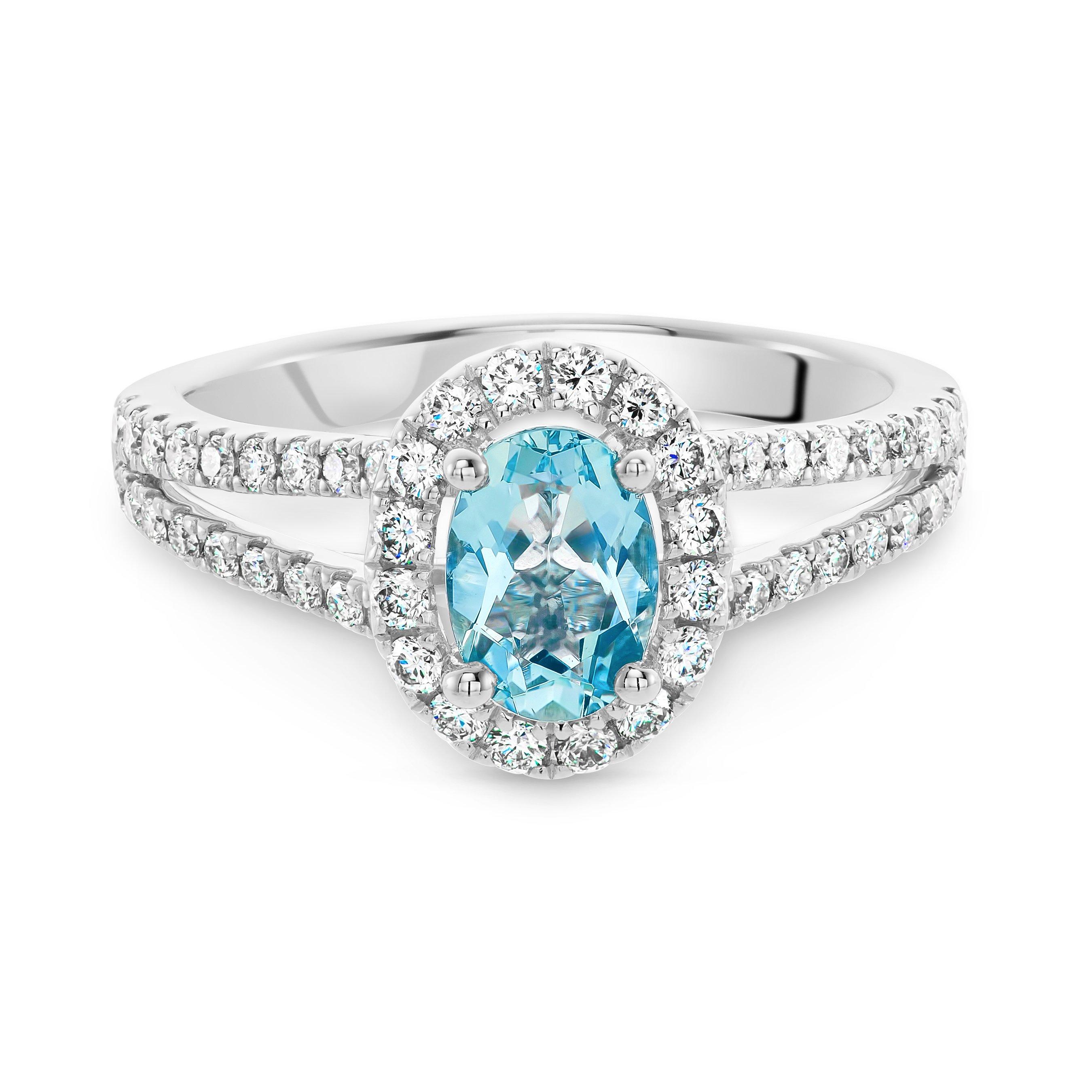 Captivating your heart with its magnificent blue hues, this Platinum Diamond Aquamarine Halo Engagement Ring has been meticulously crafted with love and romance. Guaranteed to put a smile on their face, a dazzling display of diamonds beautifully surrounds the centre stone and effortlessly bring this ring to life.