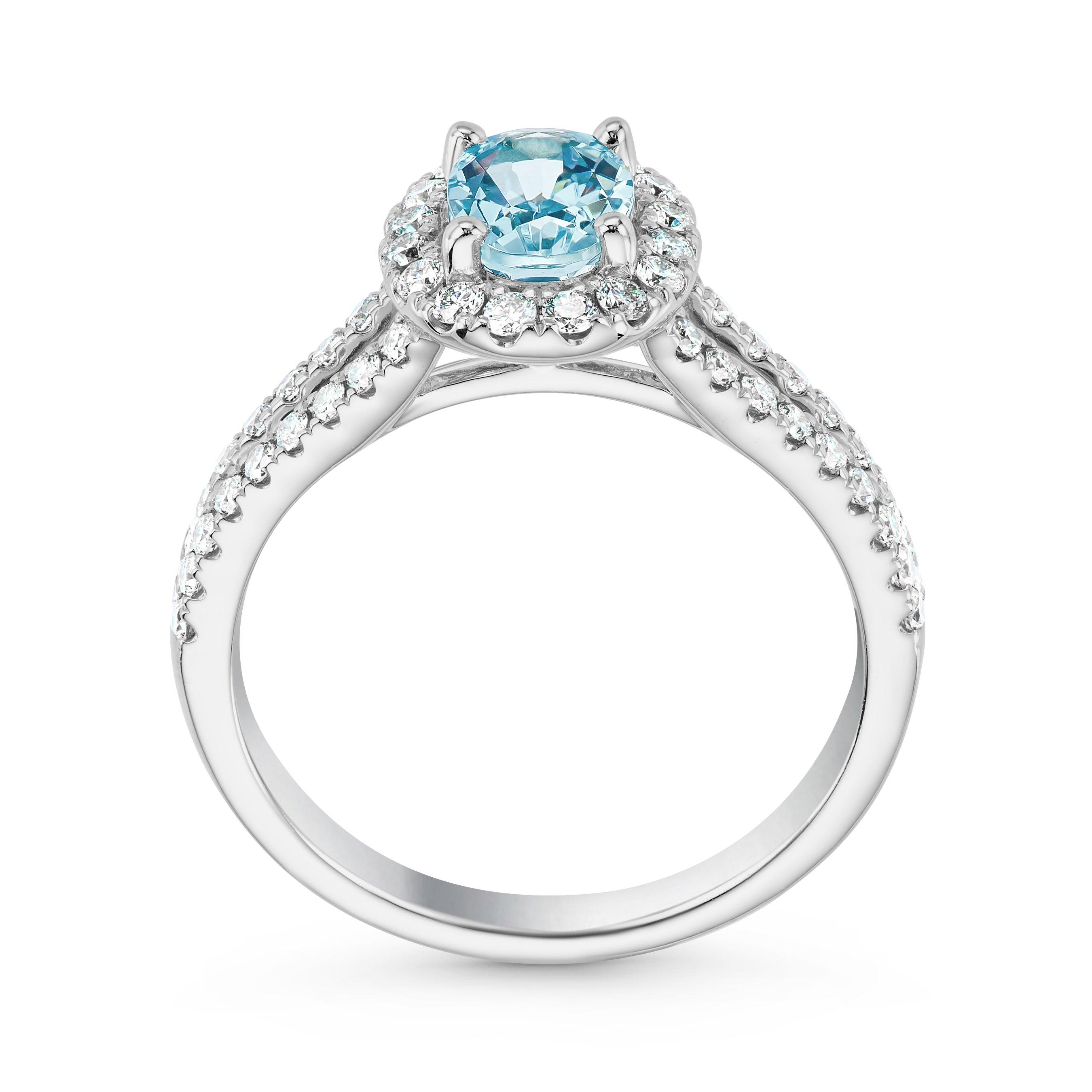 Platinum Diamond Aquamarine Halo Engagement Ring