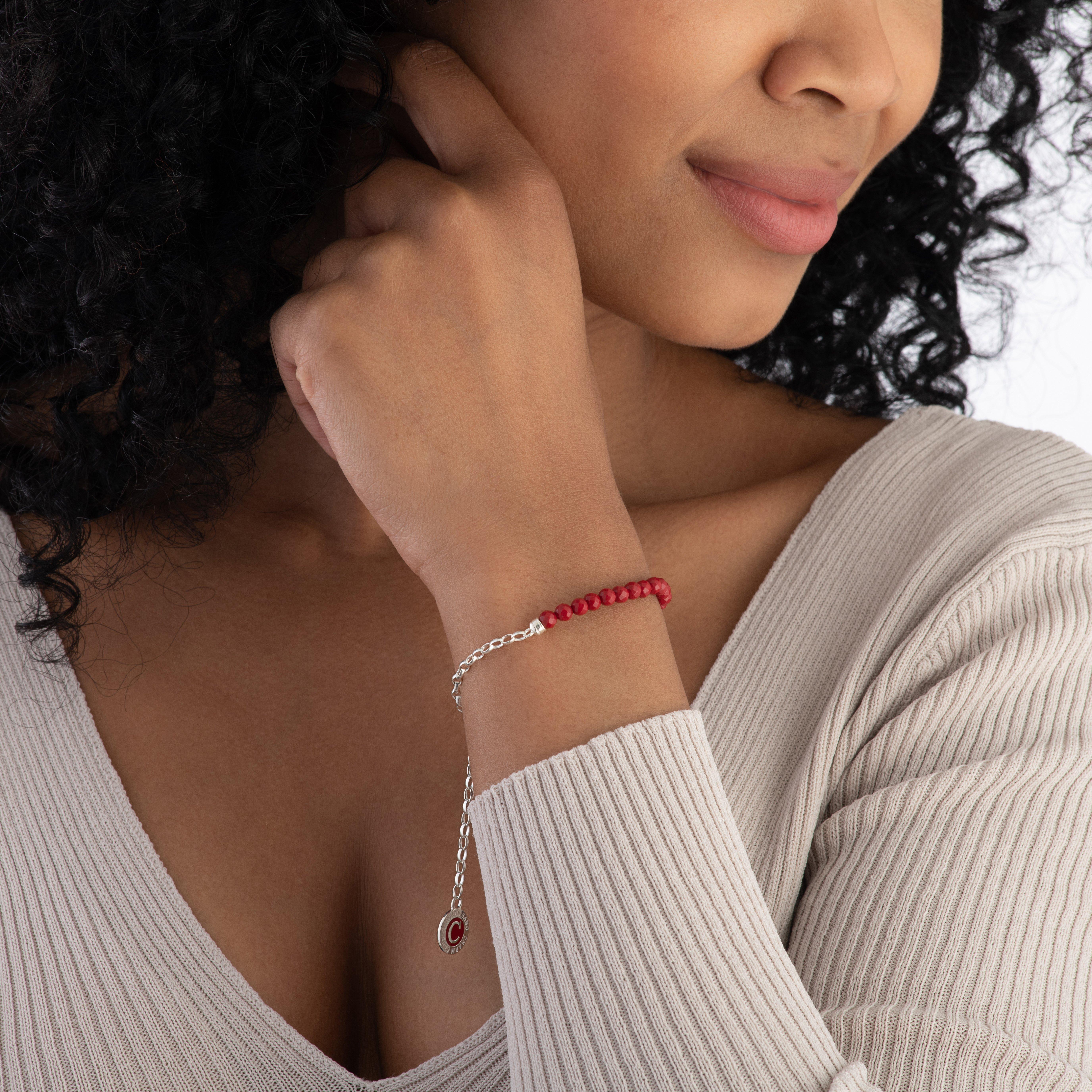 Ensure all eyes are on you with this Thomas Sabo Charmista Club Silver Red Bead Bracelet, designed with striking red, imitation coral beads, hand painted detailing and a Thomas Sabo Charmista Club coin for an extra touch of elegance.