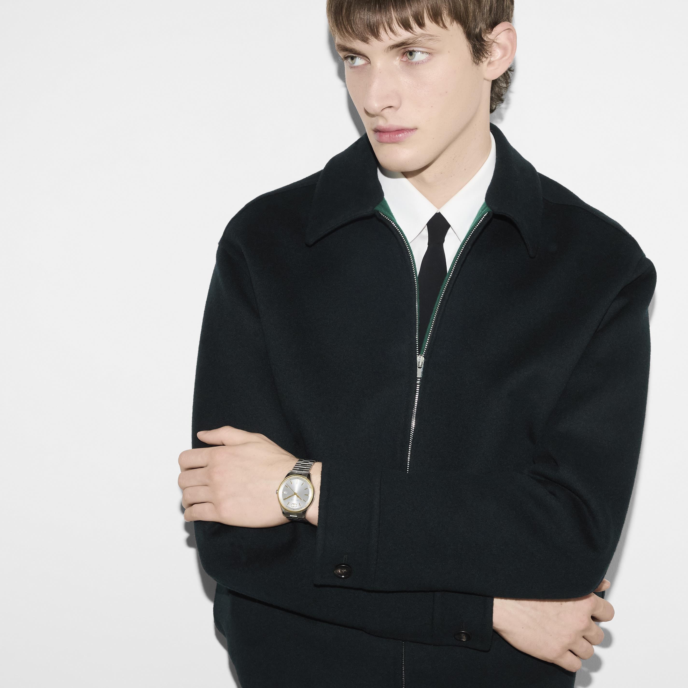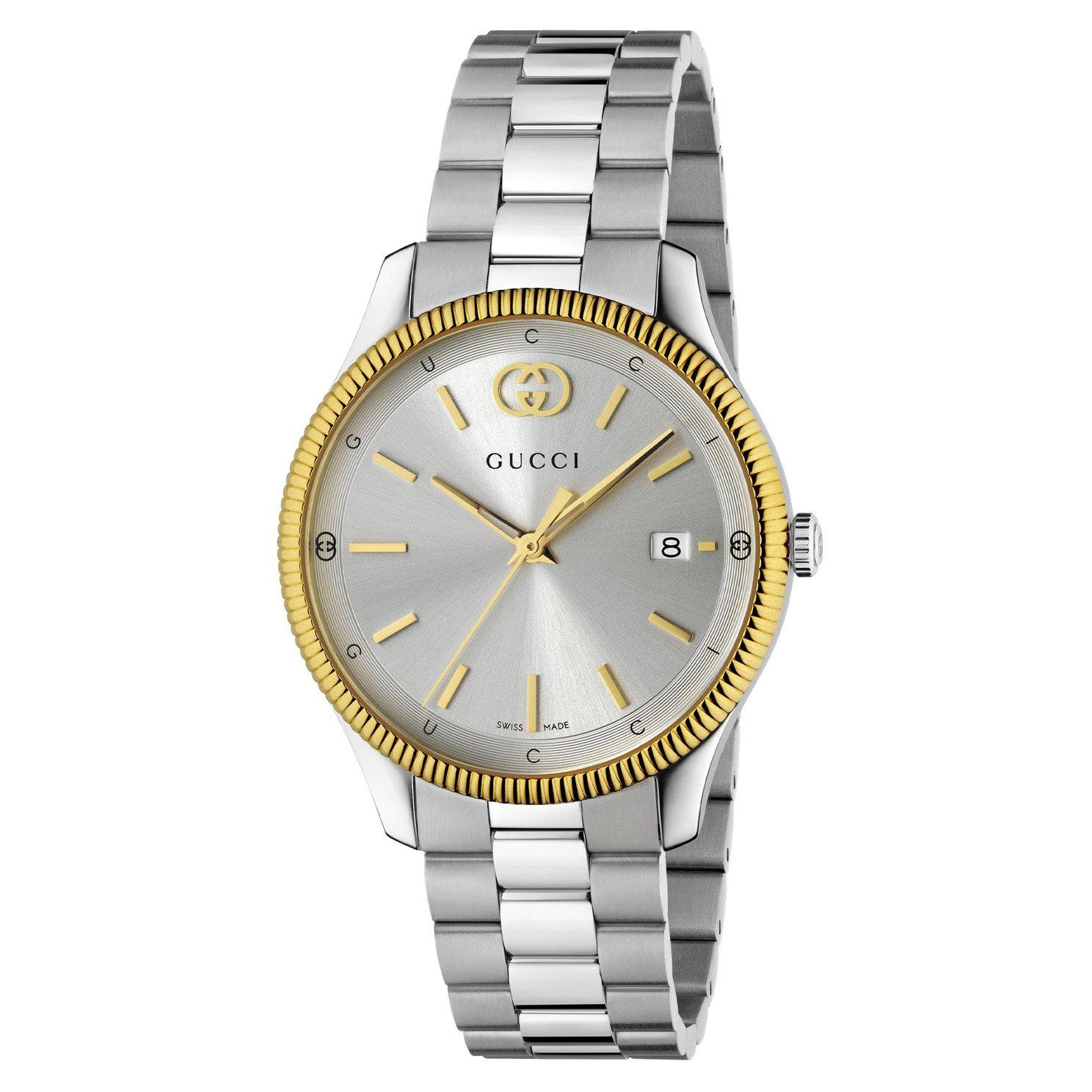 Seamlessly blending modern luxury and timeless design, this Gucci G-Timeless 38mm Stainless Steel and Yellow Gold Plated Watch embodies the brands iconic sophistication and style.