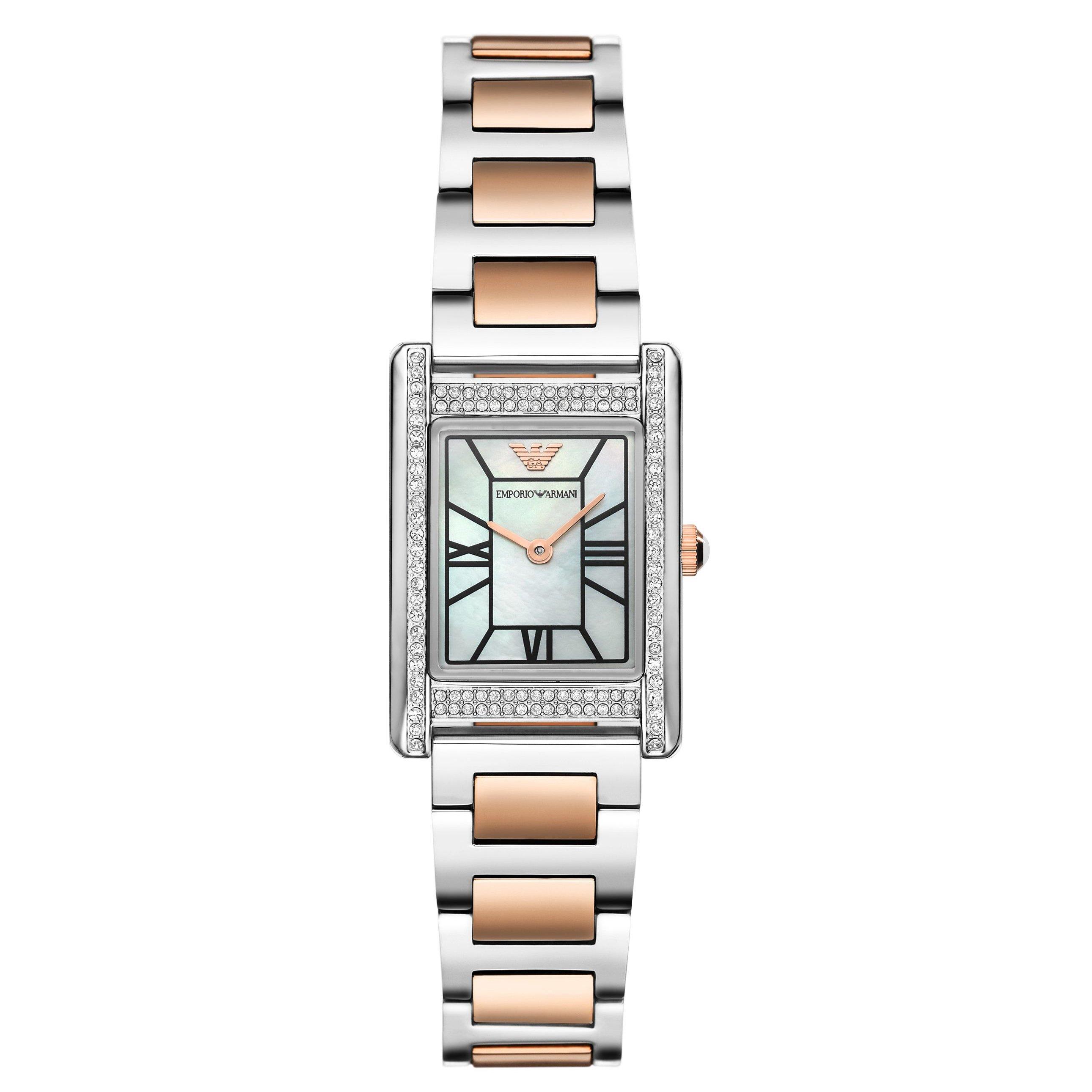 A timeless fusion of contemporary allure, crystal detailing and a sleek profile, this Emporio Armani 32mm Stainless Steel and Rose Gold Tone Crystal Ladies Watch is the ultimate go-to accessory for all of those special occasions.
