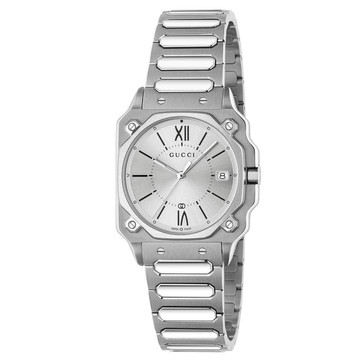 Step into a world of timeless style with this Gucci G-Flat 24mm Watch. A sophisticated design that redefines modern luxury, this timepiece is made to suit any occasion.