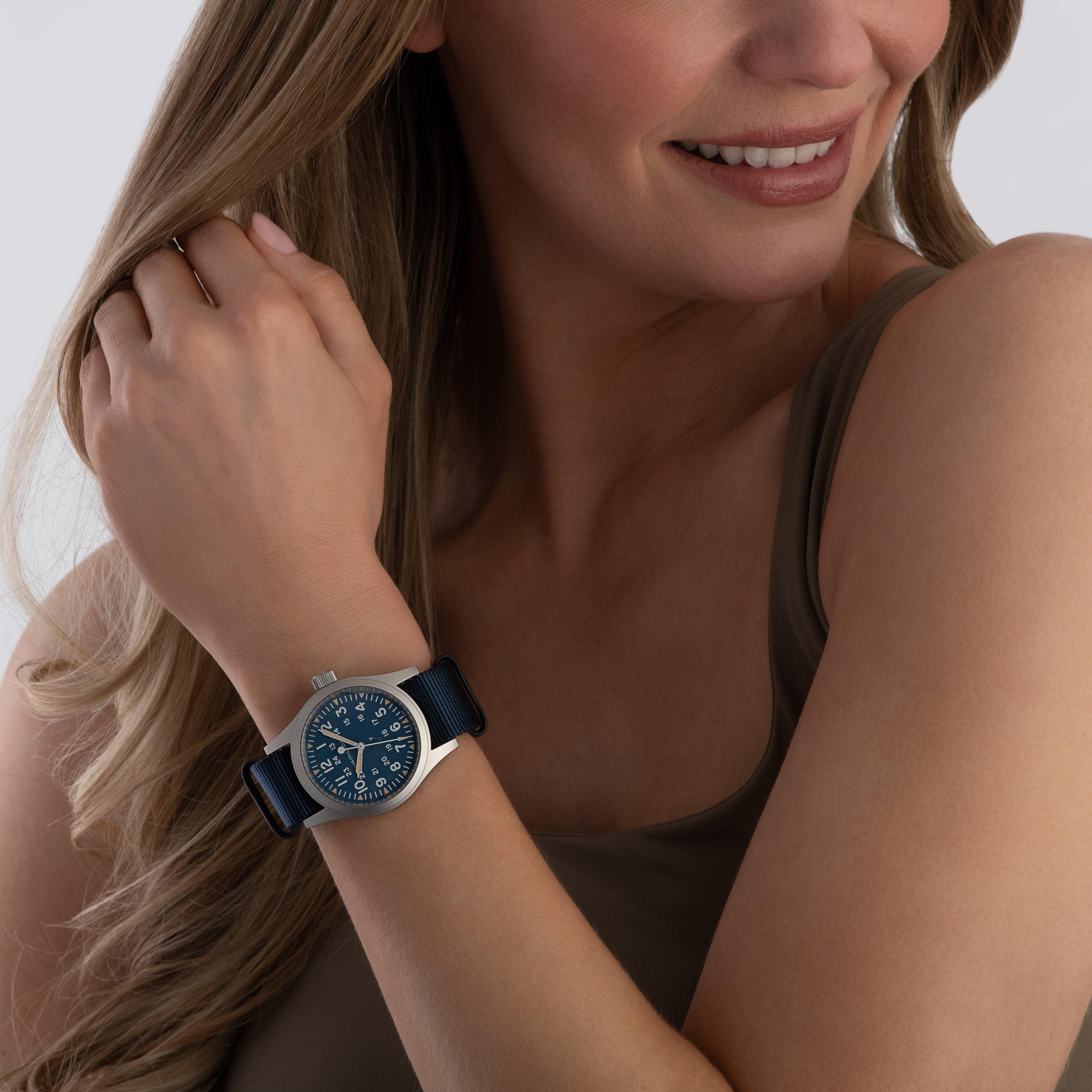 A nod to the brands military roots, this Hamilton Khaki Field Mechanical Watch seamlessly blends timeless craftsmanship with modern durability, to deliver a confident companion that’s built for adventure.