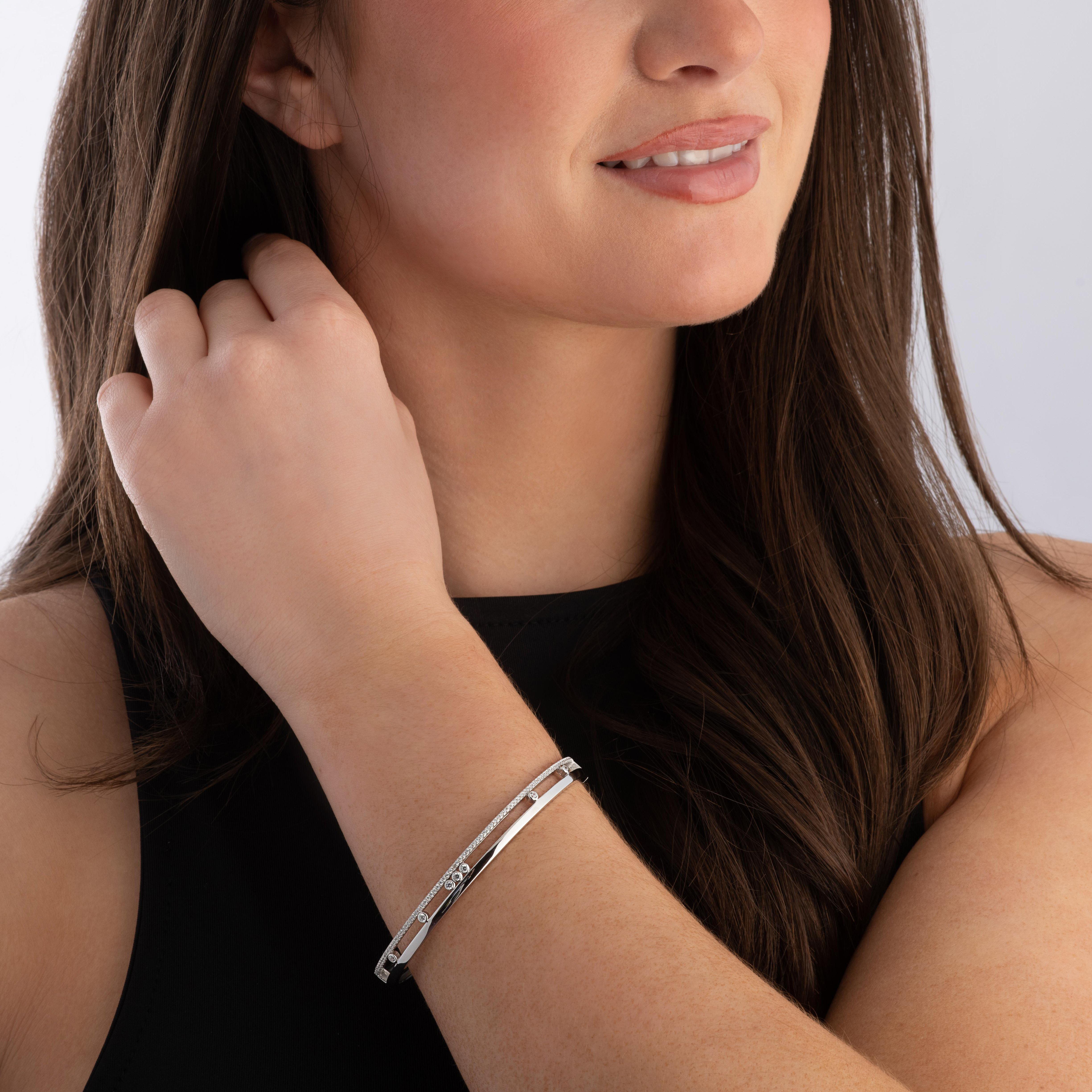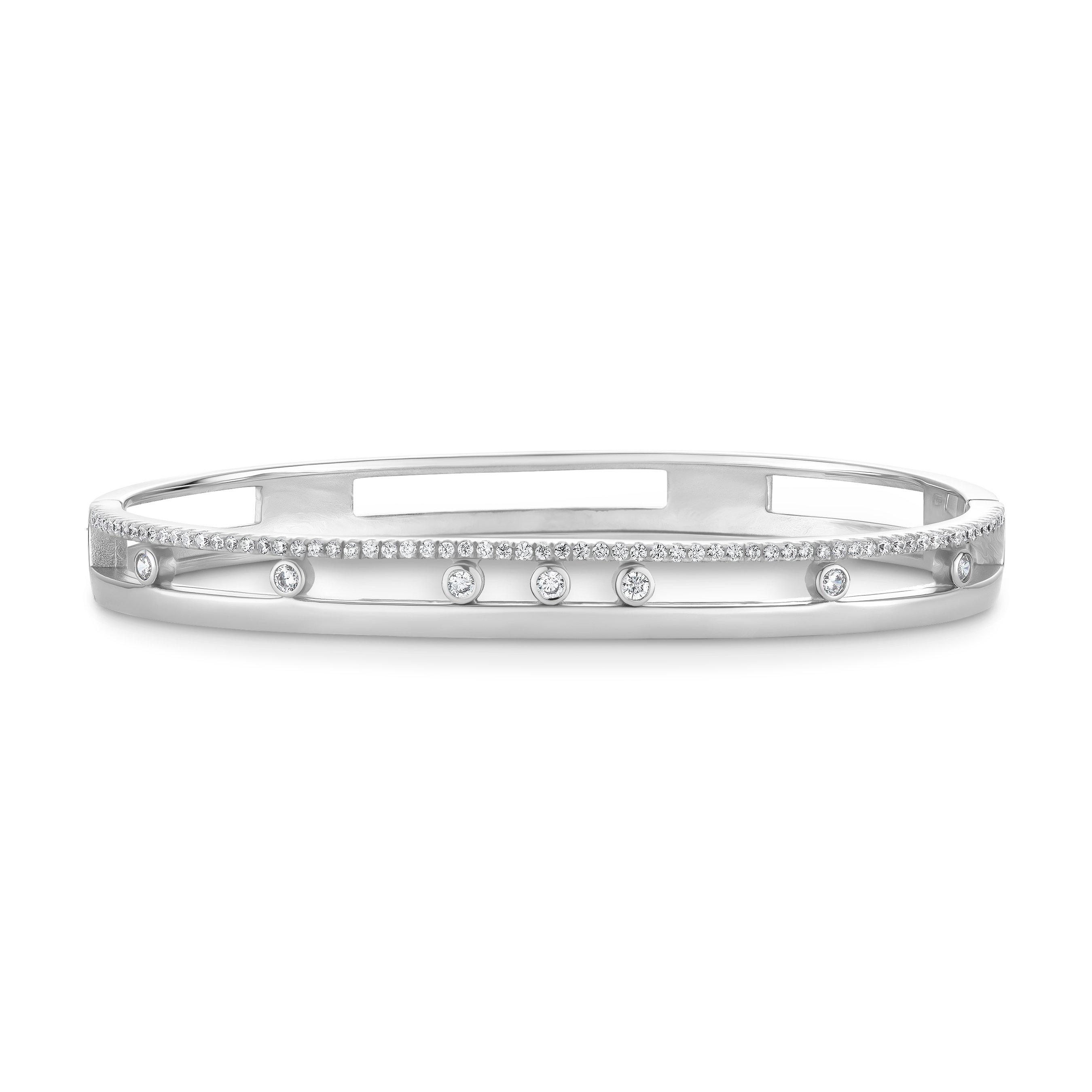 Capture every moment with glamour and sophistication with this Silver Cubic Zirconia Glide Bangle. Beautifully designed with a display of glistening cubic zirconia crystals, this bangle is bound to add an understated sense of luxury to every one of your look.