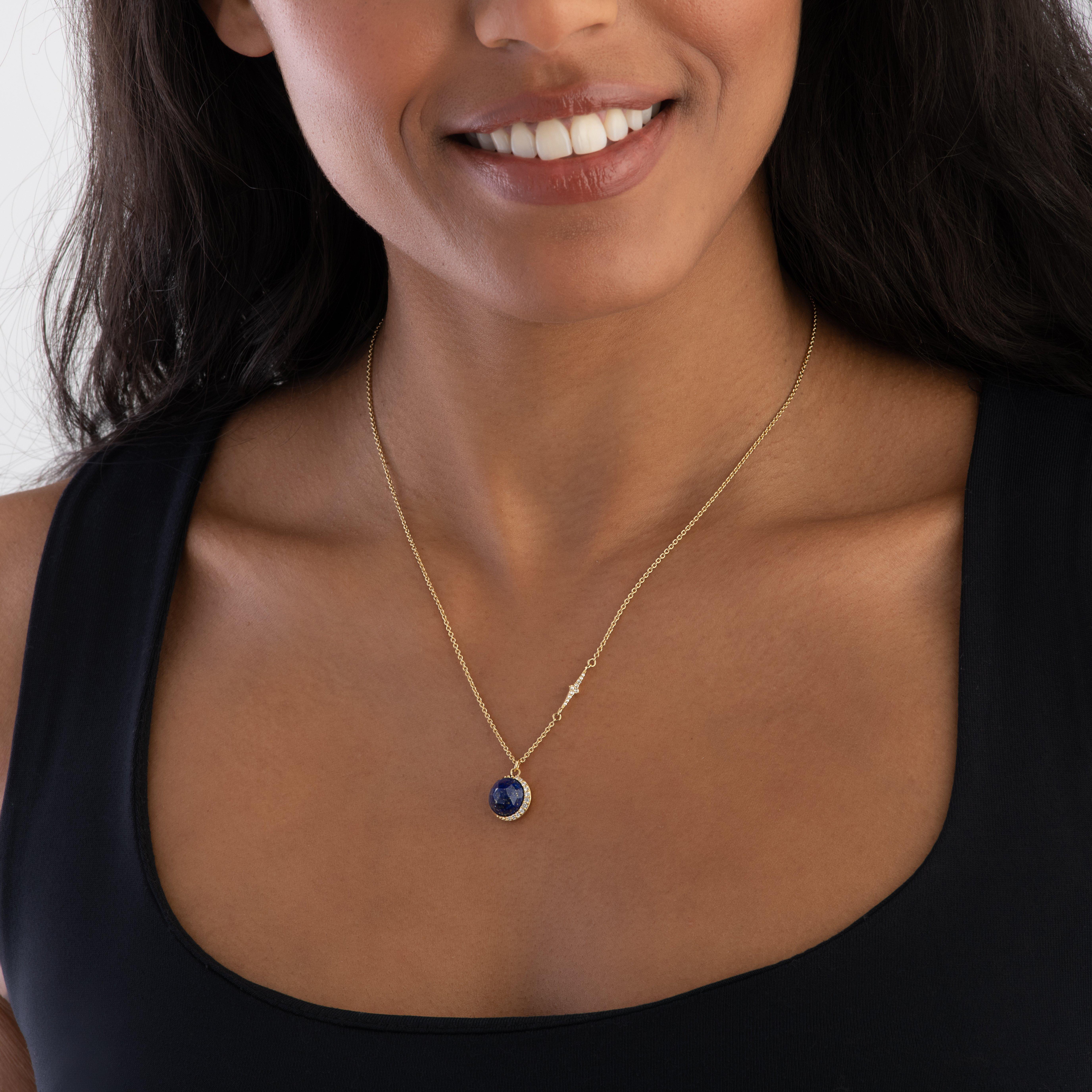 Bring your everyday look to life with this sensational Astley Clarke Luna 18ct Yellow Gold Vermeil Lapis Lazuli Pendant. Meticulously crafted with a crescent of white sapphires that elegantly sparkle around a blue lapis stone that beams beautifully, just like the moon.