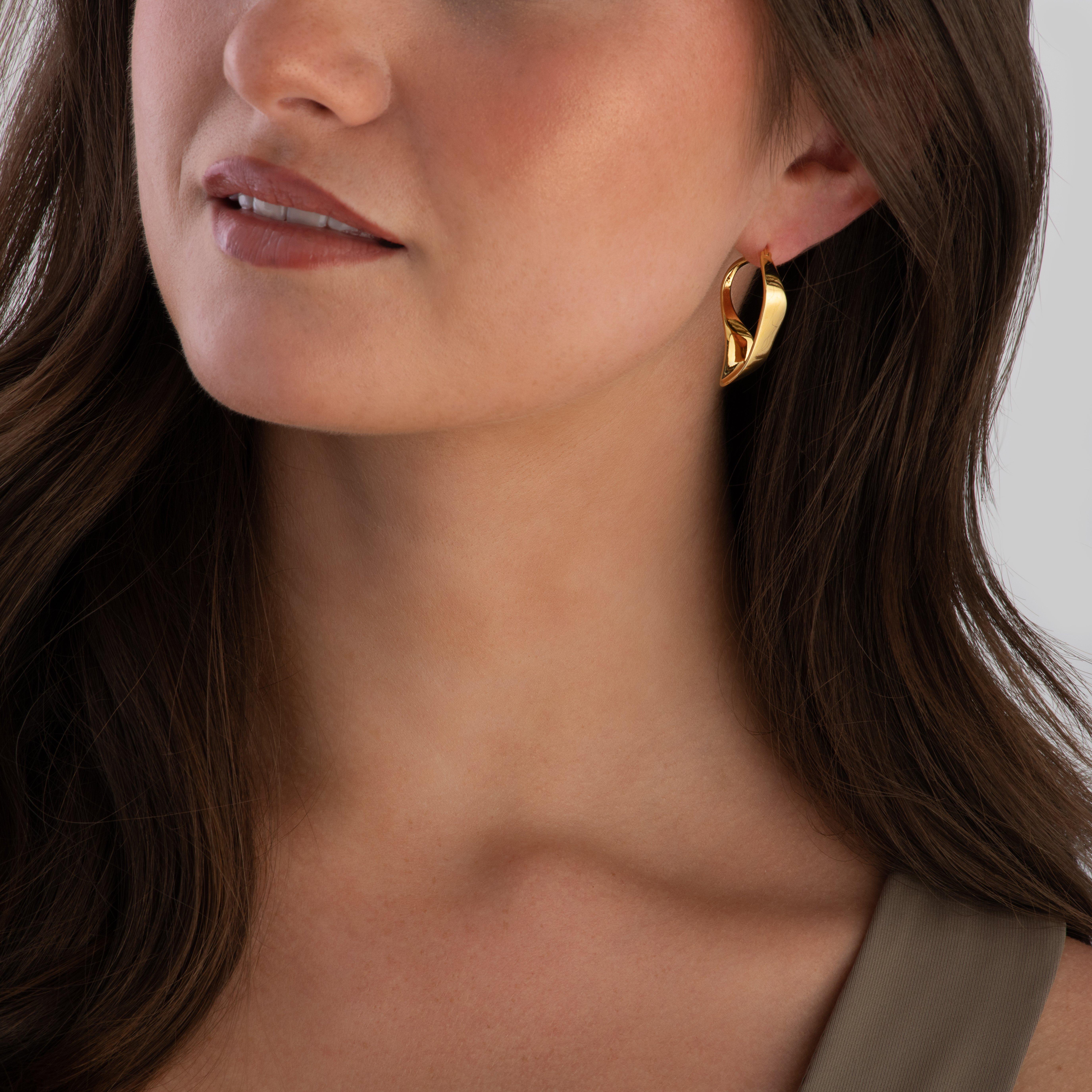 Introduce a unique twist into your everyday timeless design with these Astley Clarke Floe 18ct Yellow Gold Vermeil Hoop Earrings. Big, bold and sculptured to make a statement of captivating style, these earrings represent the smooth spiral formation of swirling ribbons.
