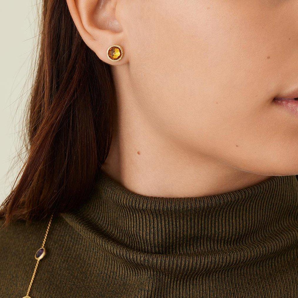 Exuding timeless elegance and refined beauty, these Marco Bicego Jaipur Colour 18ct Yellow Gold Citrine Quartz Stud Earrings are a true celebration of the brands exquisite craftsmanship.