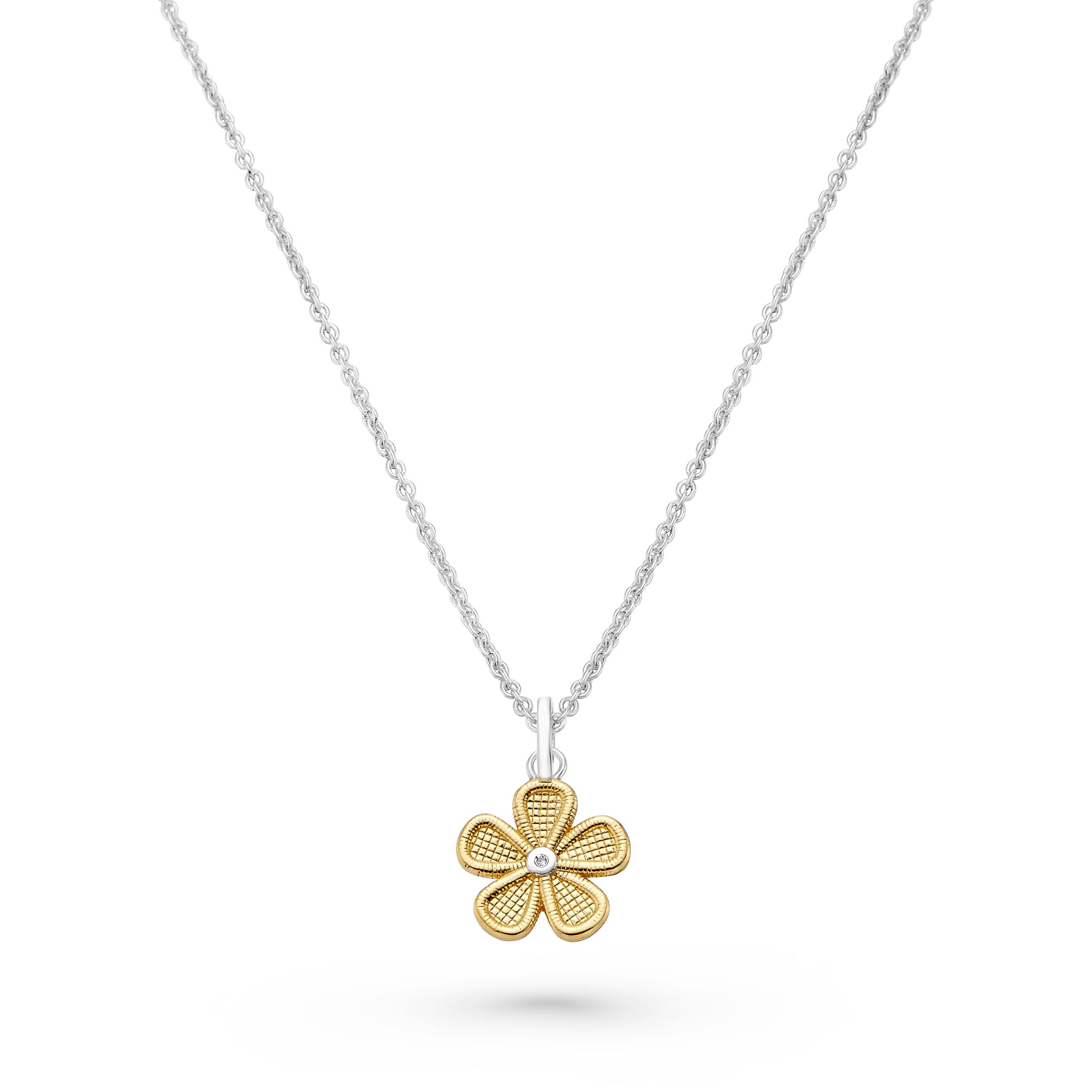 Mini B Sterling Silver and Yellow Gold Plated Diamond Flower Pendant