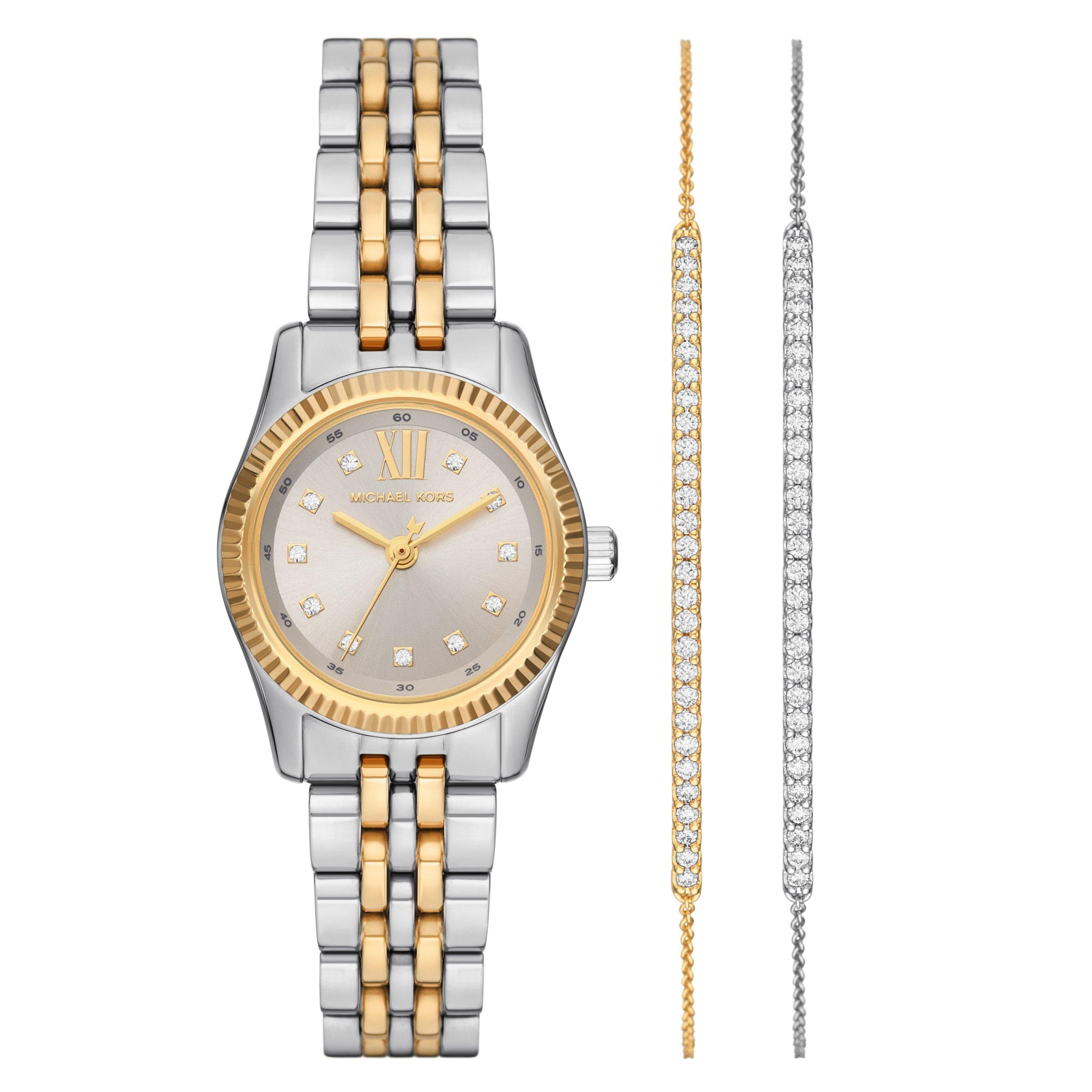 Michael Kors Lexington 26mm Stainless Steel and Yellow Gold Tone Watch and Crystal Bracelet Set