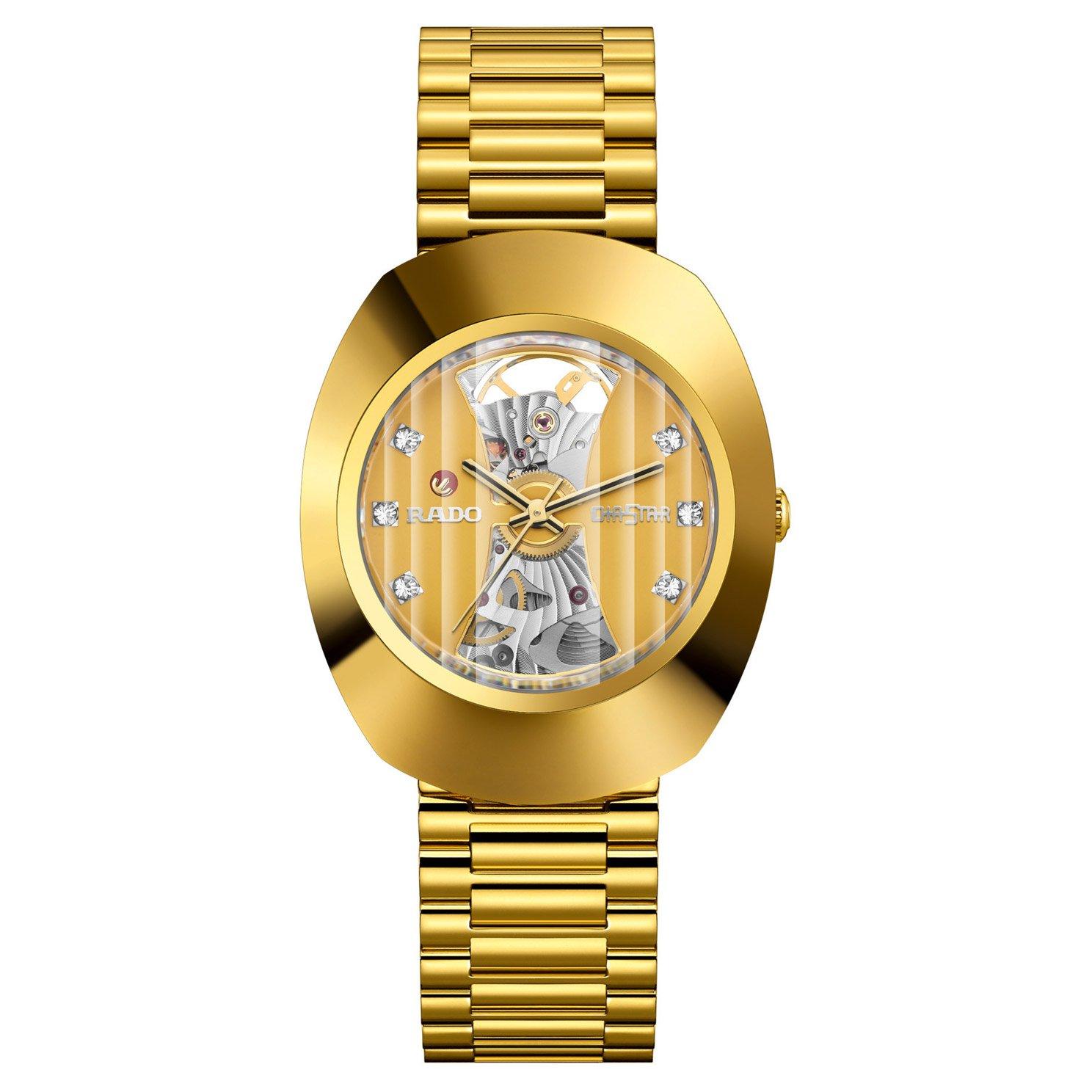 - 39mm yellow gold PVD coated stainless steel case with 20m water resistance