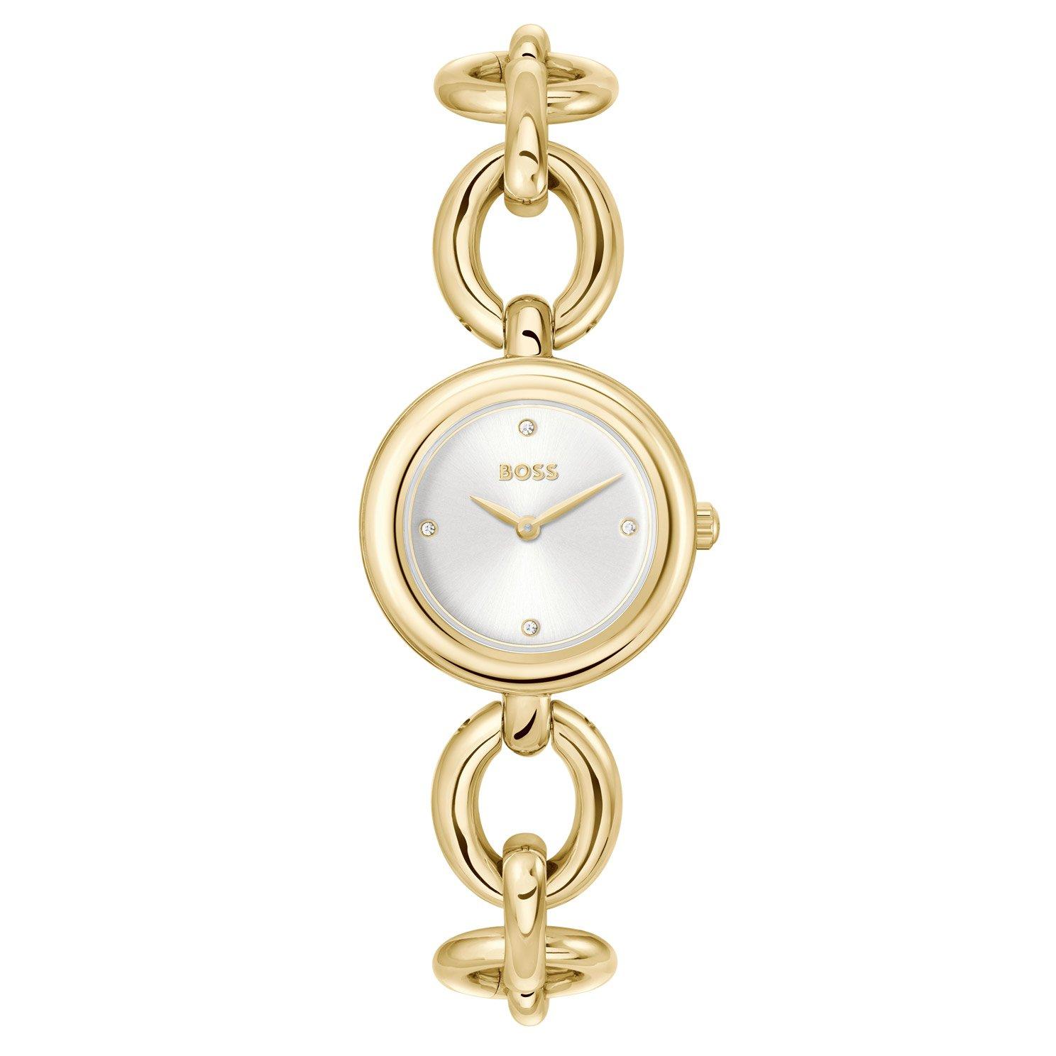 Introducing the BOSS Live 28mm Yellow Gold Tone Crystal Ladies Watch, where style meets precision in every moment. Designed to seamlessly elevate your look with its timeless appeal, exude elegance with this classic companion.
