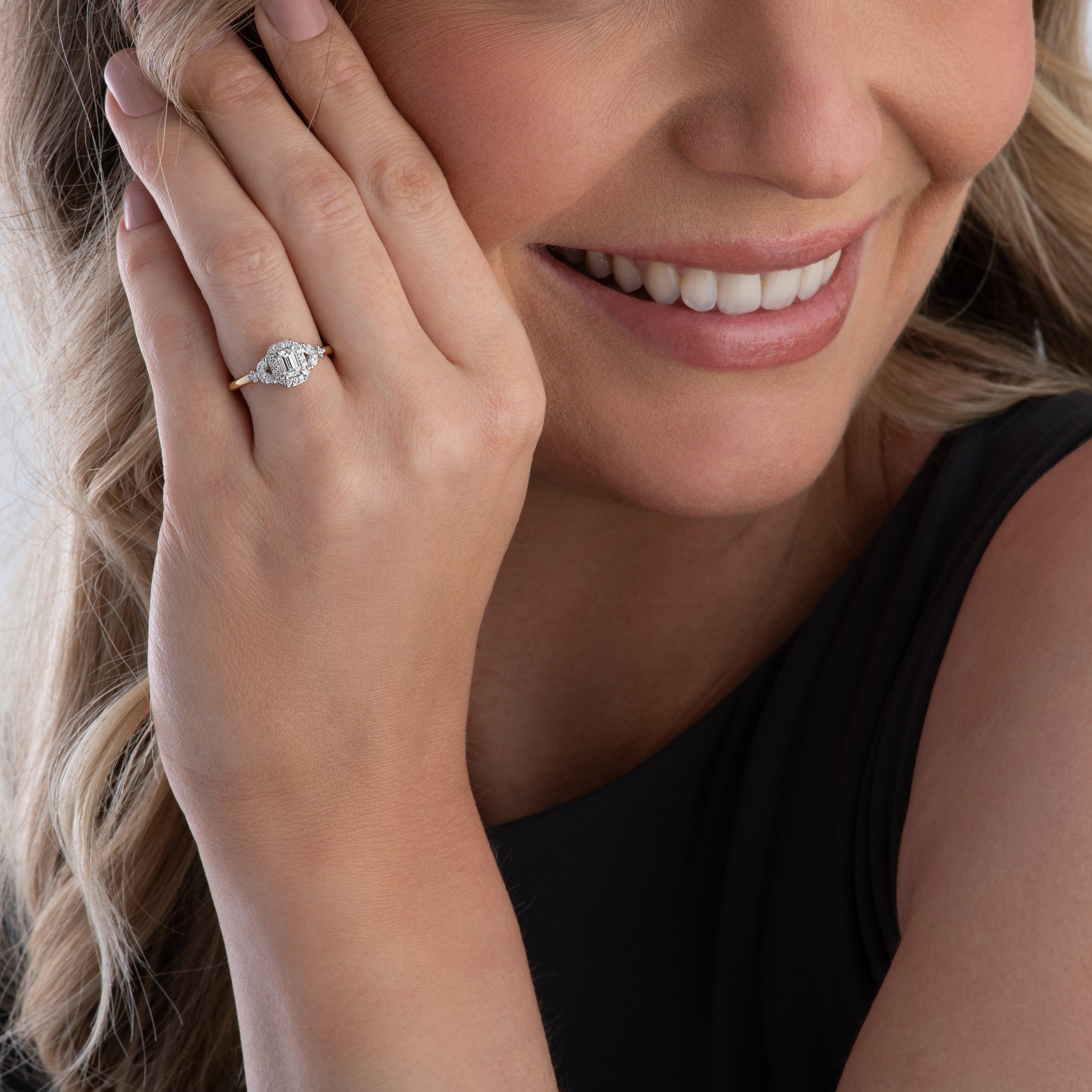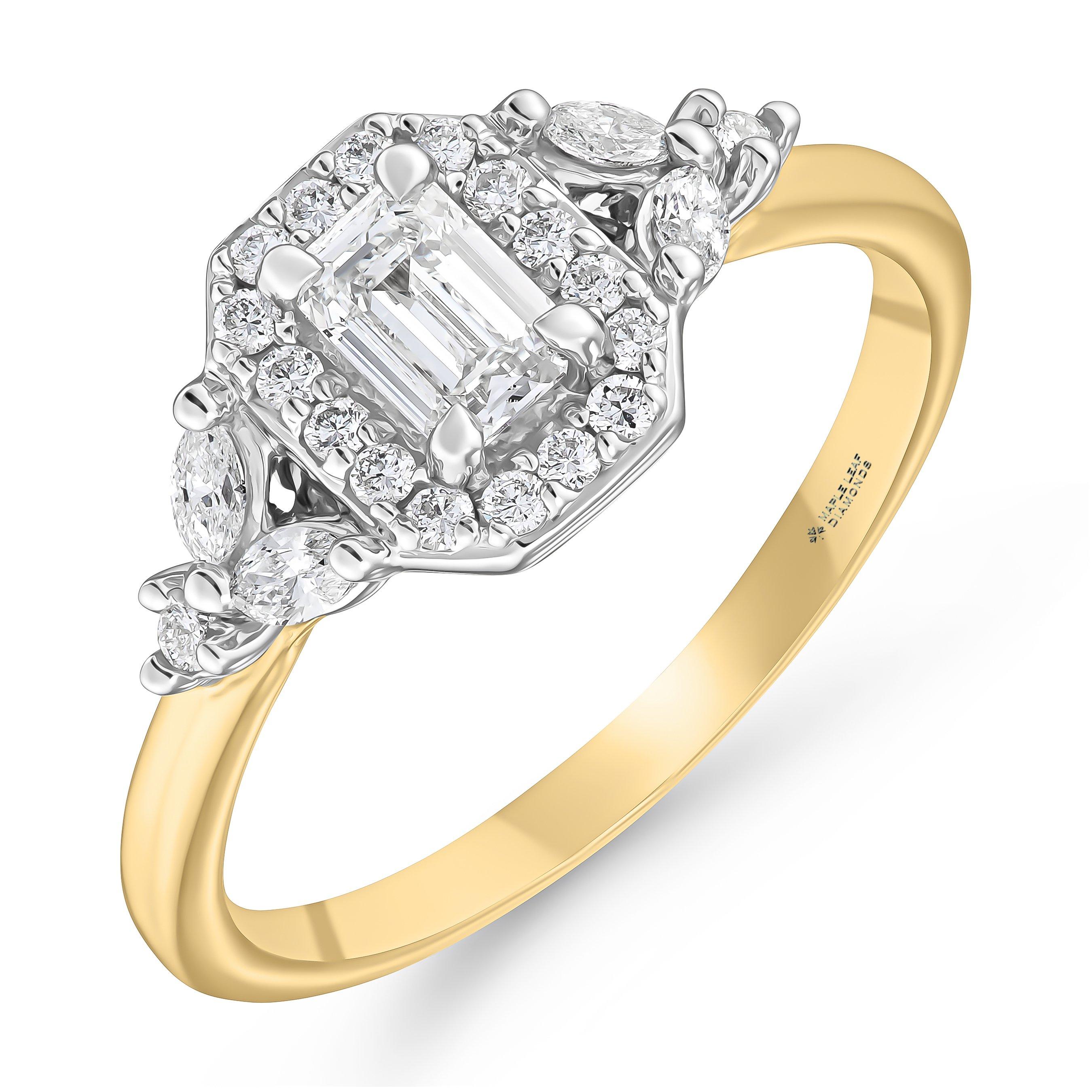 Maple Leaf Diamonds Tides of Love 18ct yellow Gold Diamond Emerald Cut Halo Engagement Ring
