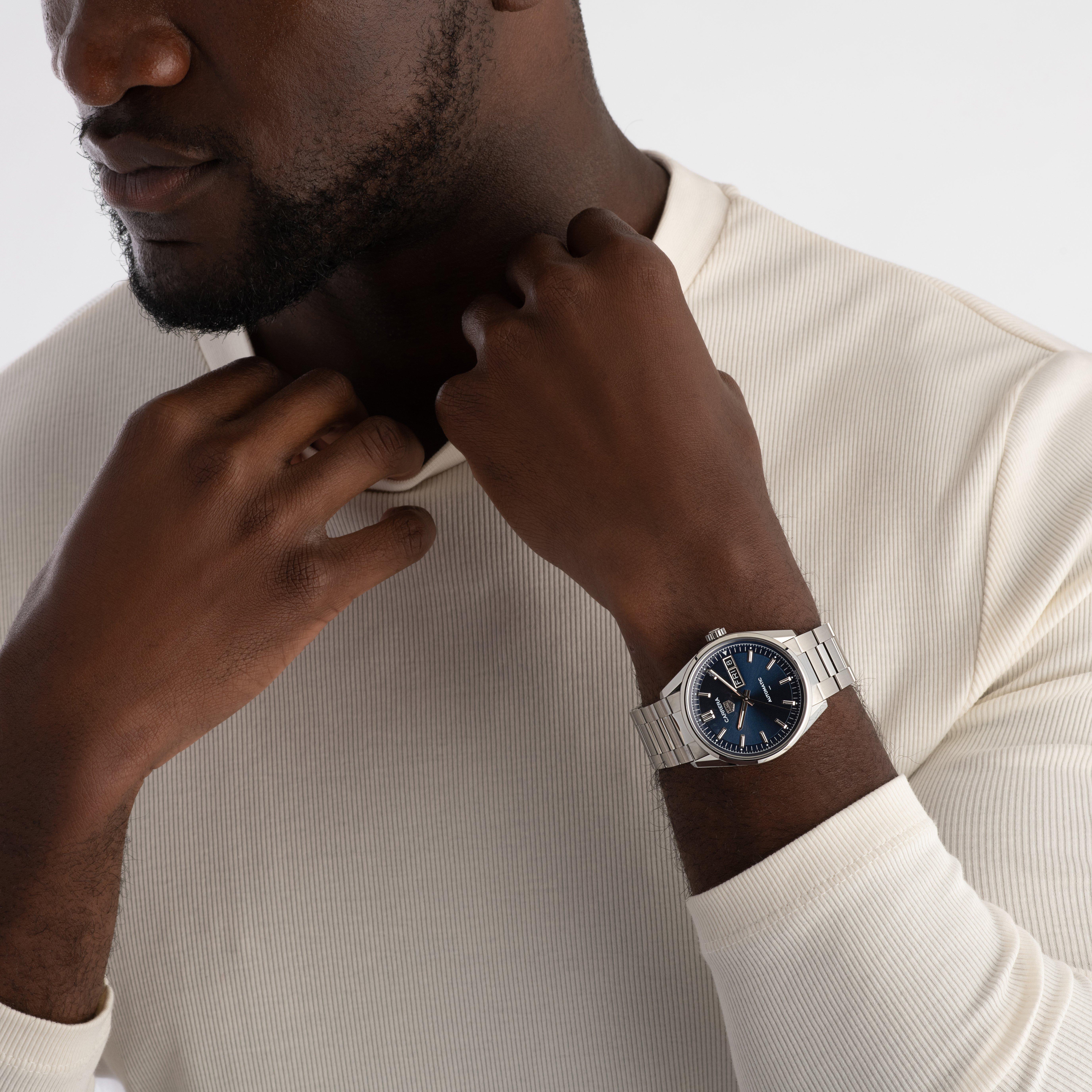 Discover sophisticated and sleek design with this TAG Heuer Carrera Day-Date 41mm Automatic Watch. Crafted meticulously with a timeless blue dial, exceptional materials and immense functionality, this timepiece truly enables you to full immerse yourself in the world of incredible craftsmanship.