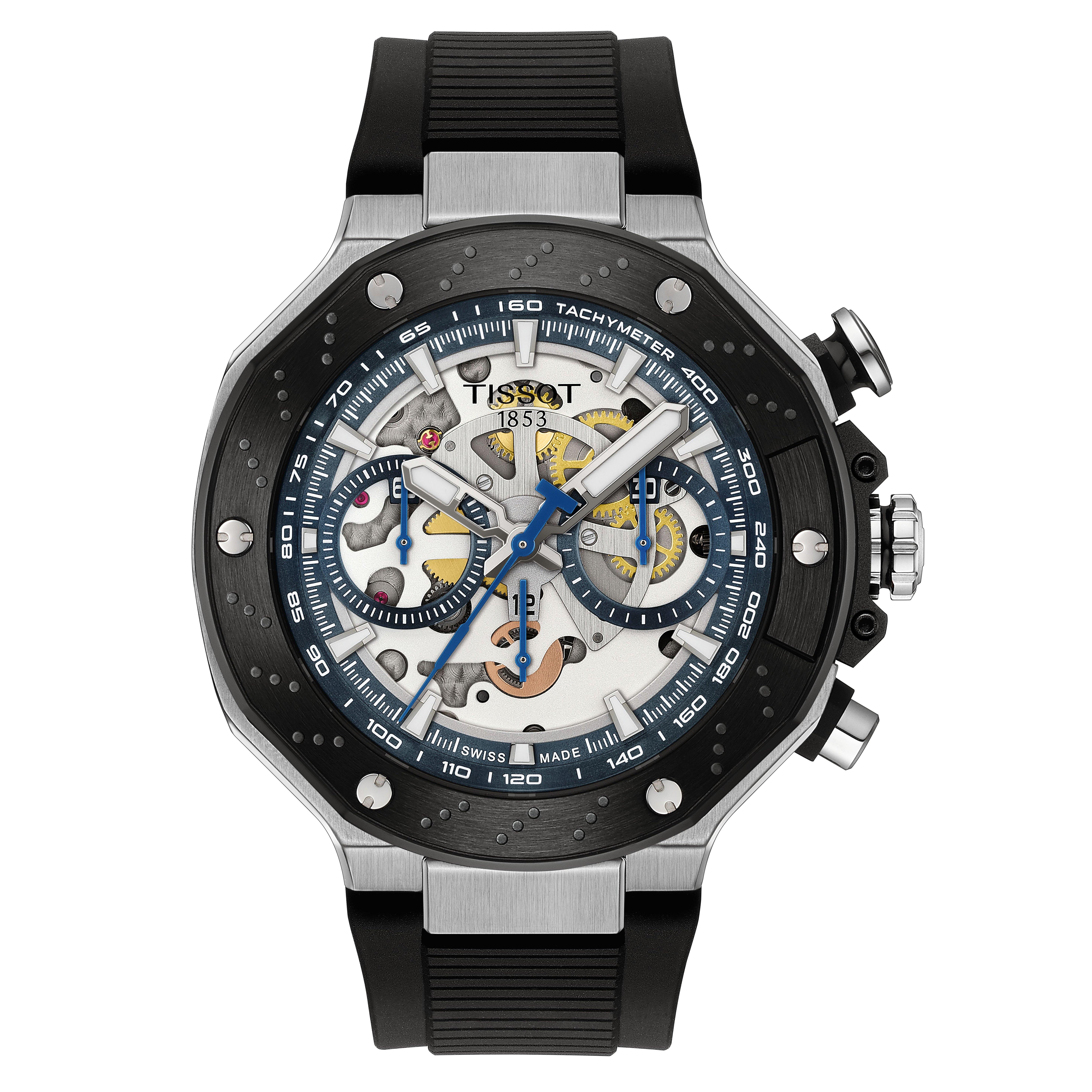 Celebrating two decades worth of partnership with MotoGP, this Tissot Limited Edition T-Race MotoGP 45mm Chronograph Automatic Men’s Watch expands the possibilities of the T-race collection. A thrilling design inspired by racing bikes, this timepiece features a skeleton dial enabling you to view the meticulous craftsmanship inside.