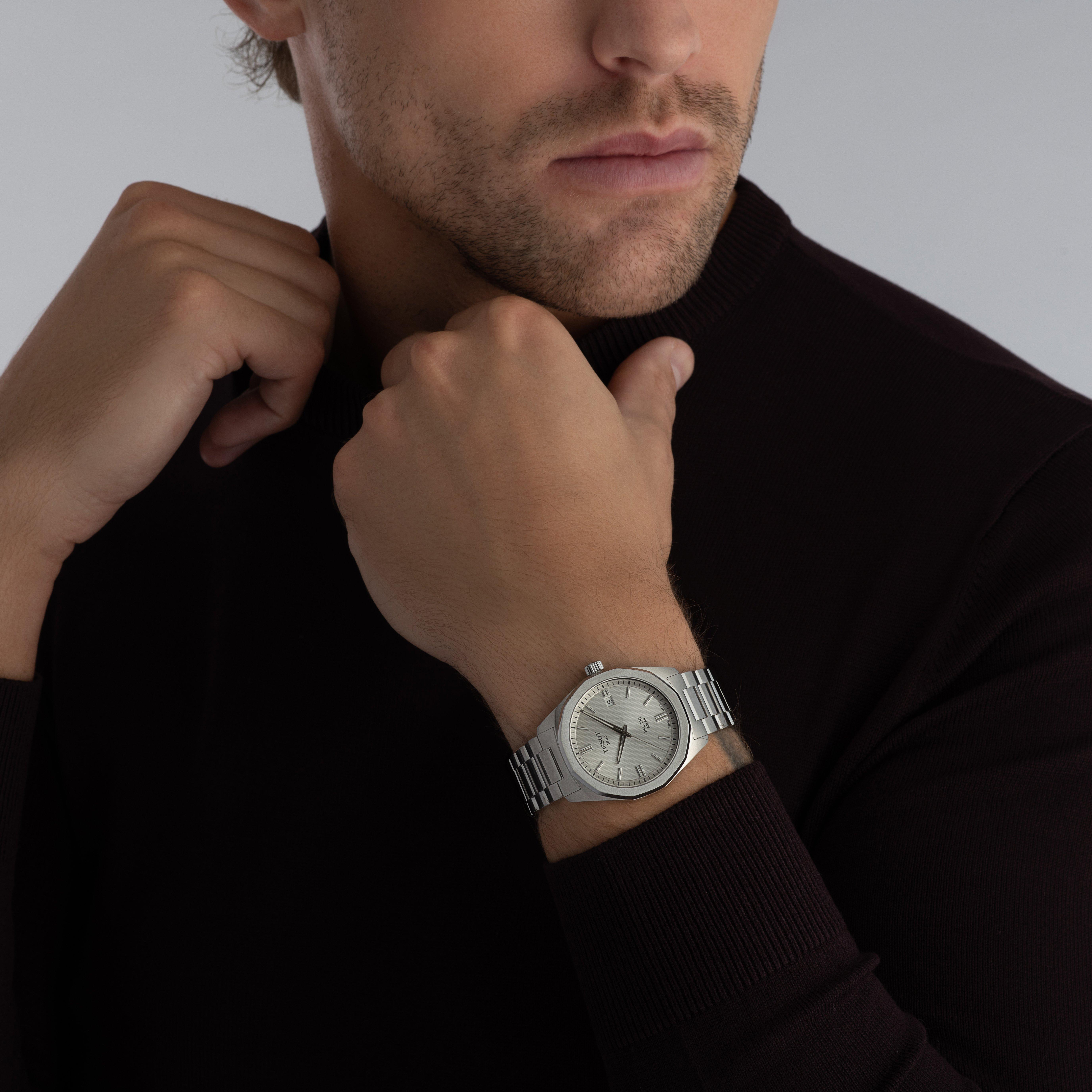 - Silver dial with hands and indexes filled with Super-LumiNova
