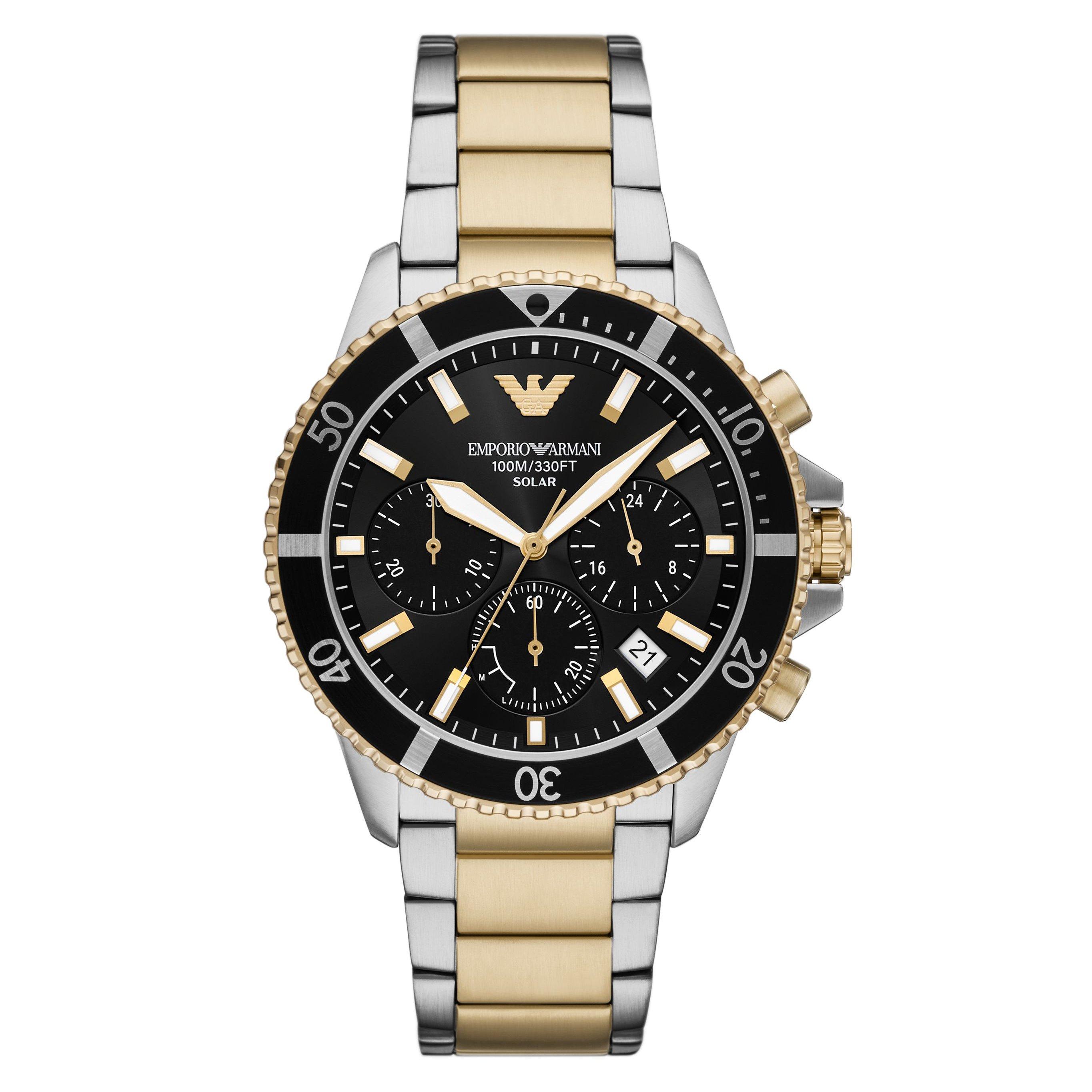Emporio Armani World Explorer Solar 43.5mm Stainless Steel and Yellow Gold Tone Chronograph Men’s Watch