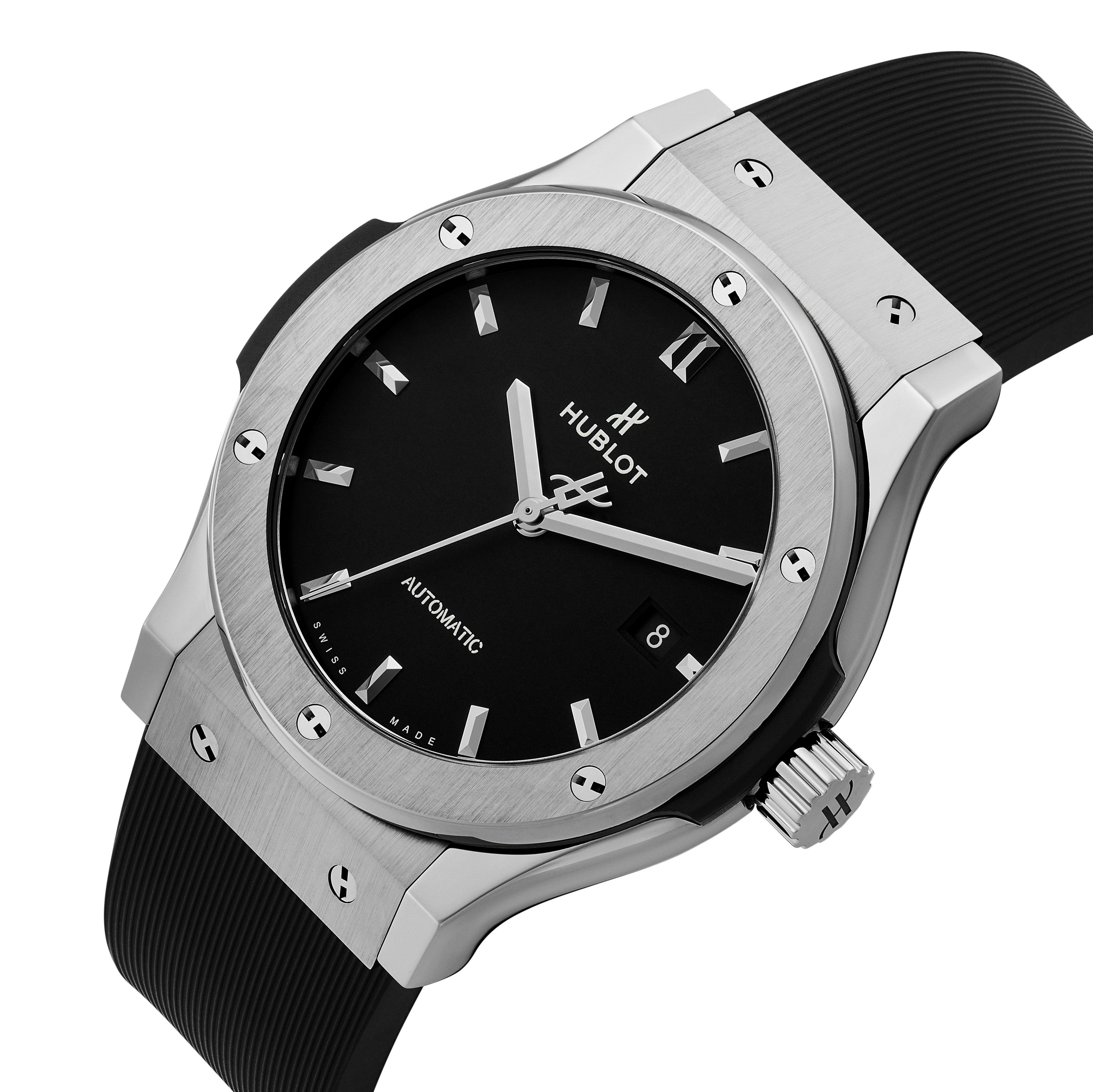 Discover pioneering craftsmanship with this Hublot Classic Fusion 42mm Titanium Automatic Watch. Combining the brands iconic innovative spirit with a bold and sophisticated aesthetic, this timepiece is a symbol of uncompromising performance and luxurious watchmaking.