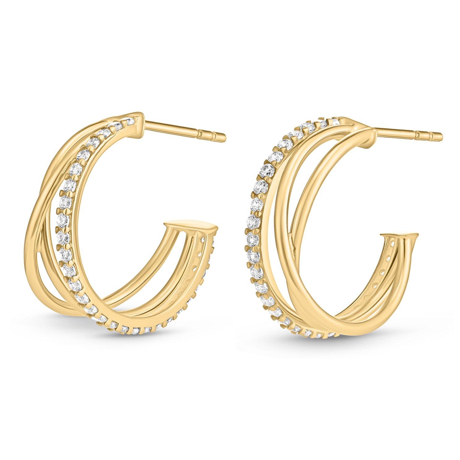 9ct Yellow Gold Cubic Zirconia Twist Hoop Earrings