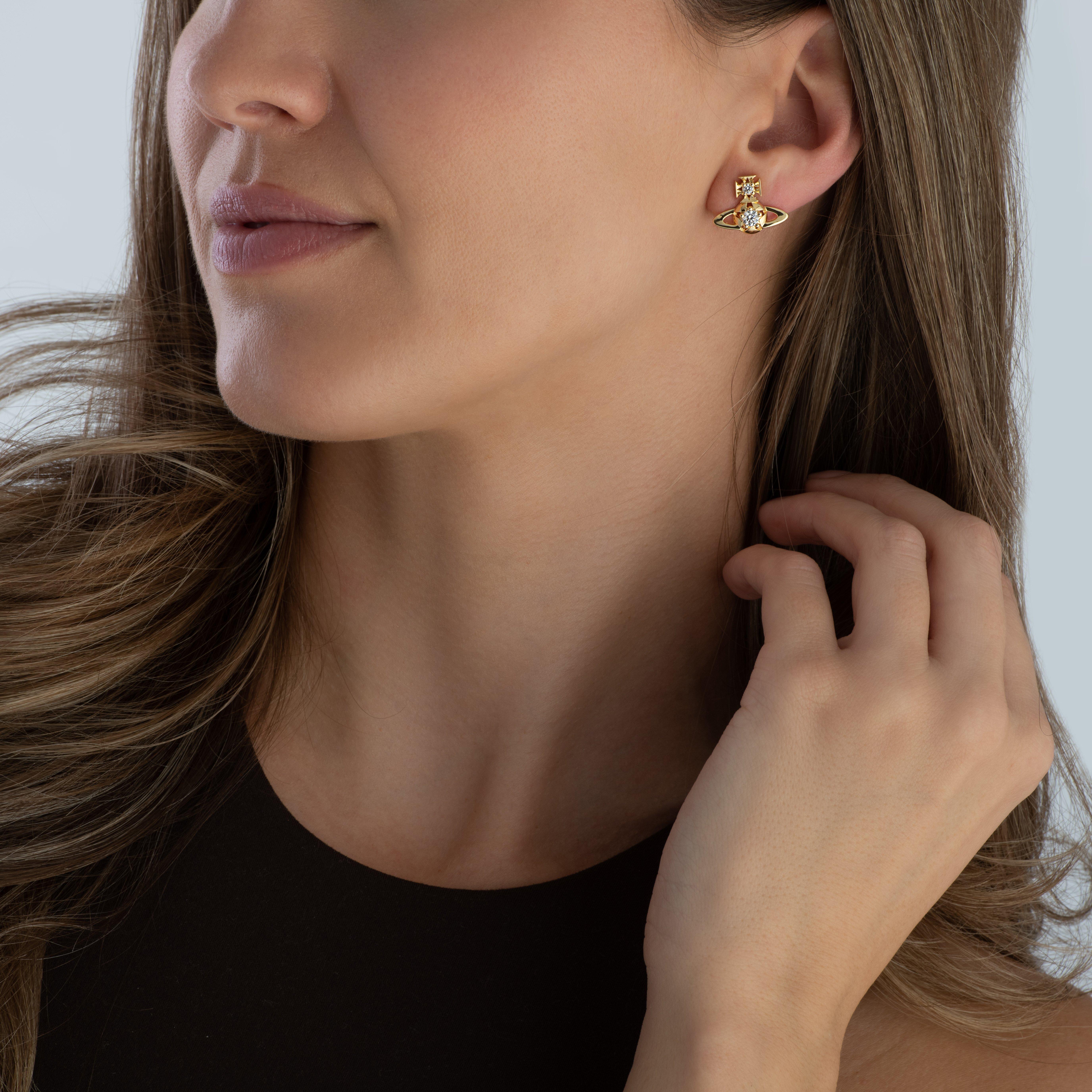 Vivienne Westwood Lee Yellow Gold Tone Cubic Zirconia Stud Earrings