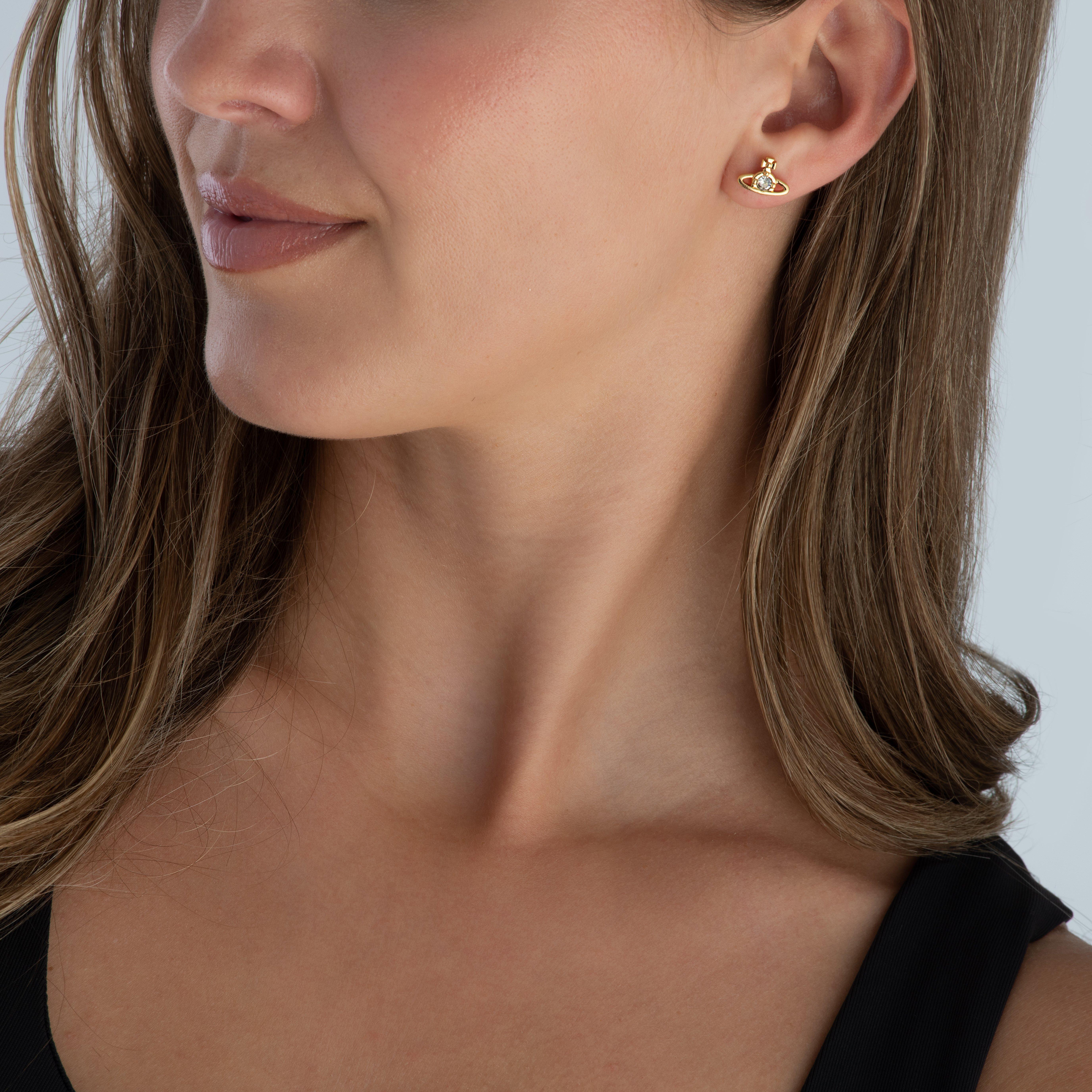 Vivienne Westwood Nano Yellow Gold Tone Cubic Zirconia Stud Earrings