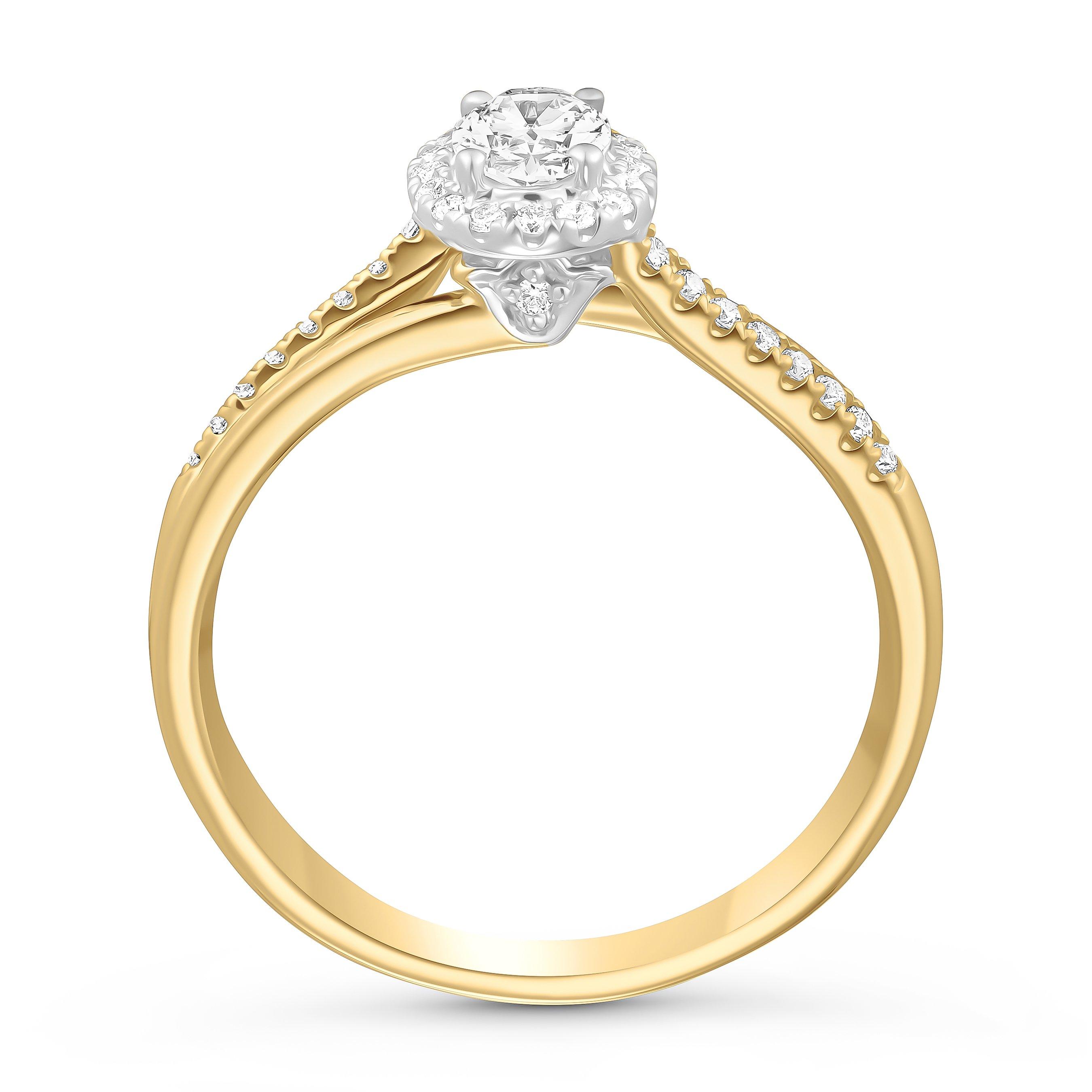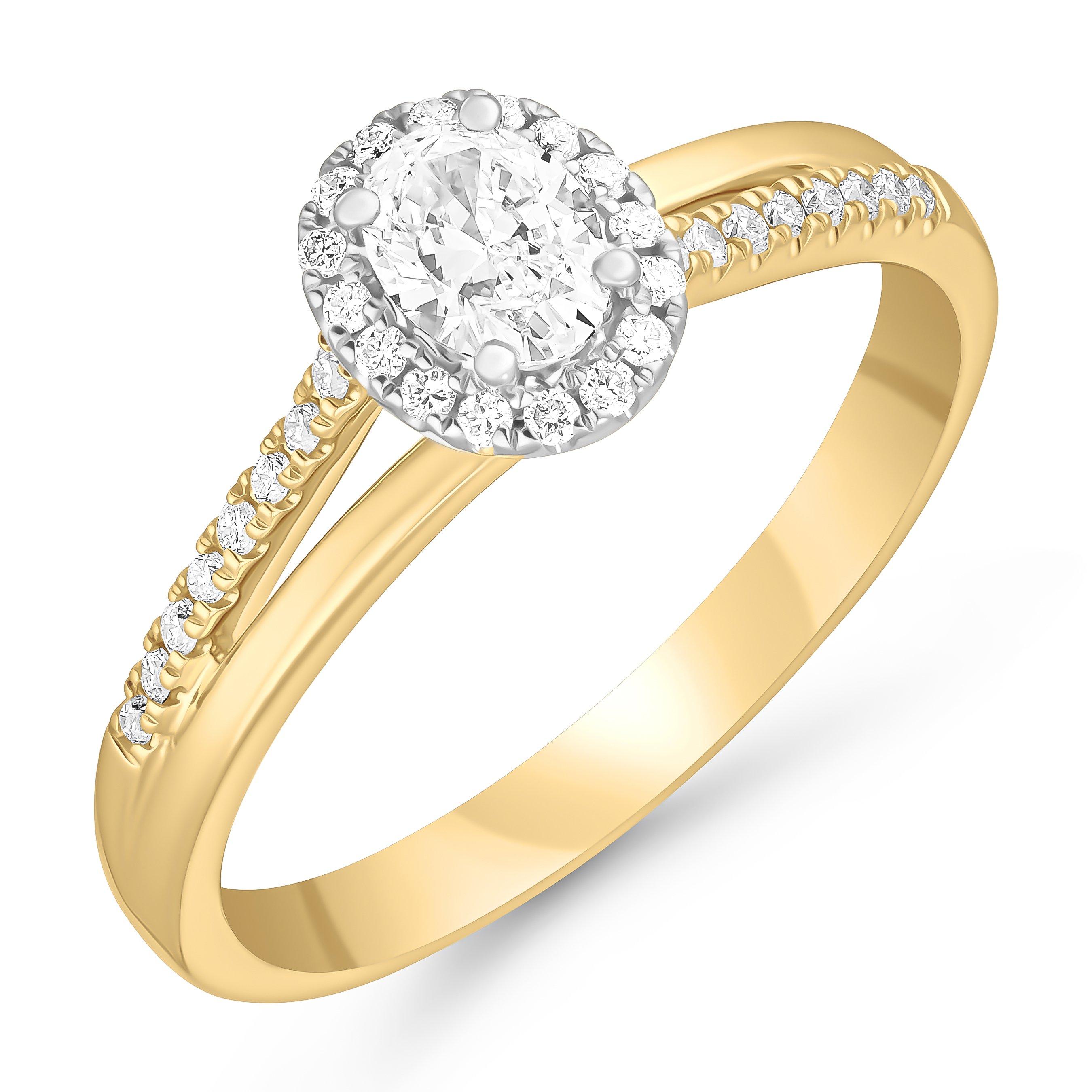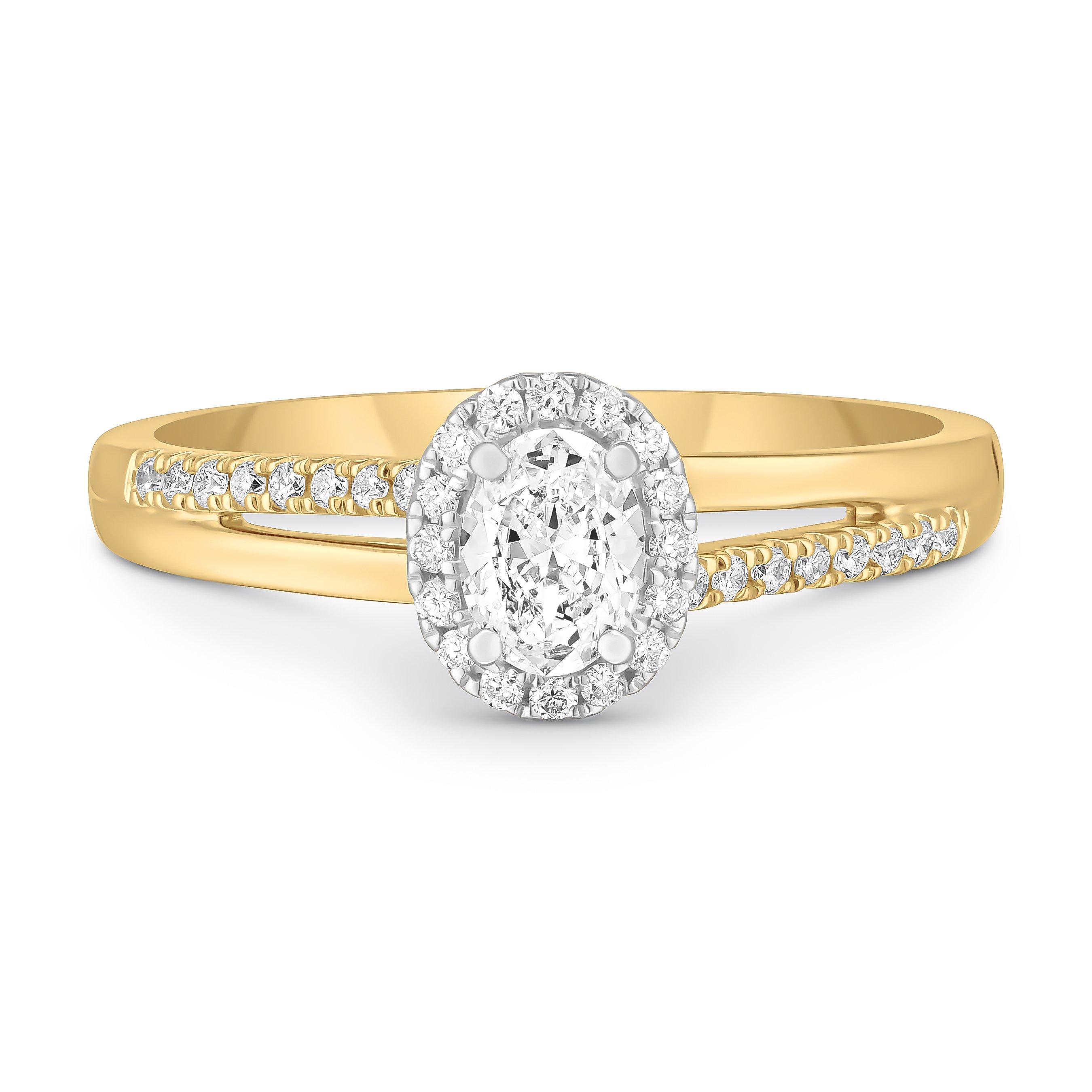 Adorned with timeless elegance in every detail, celebrate your love story with this 18ct Yellow Gold Diamond Oval Shaped Halo Engagement Ring.