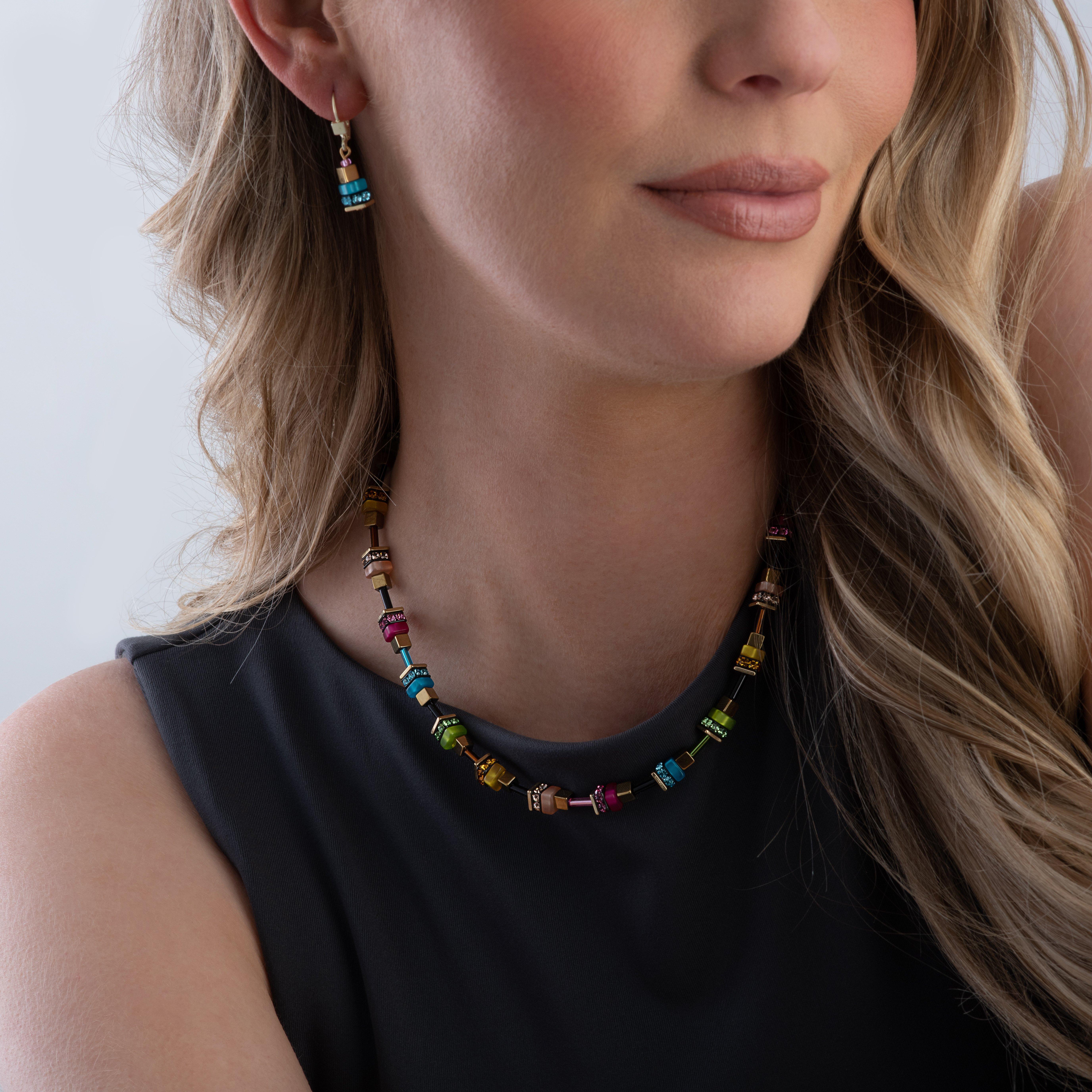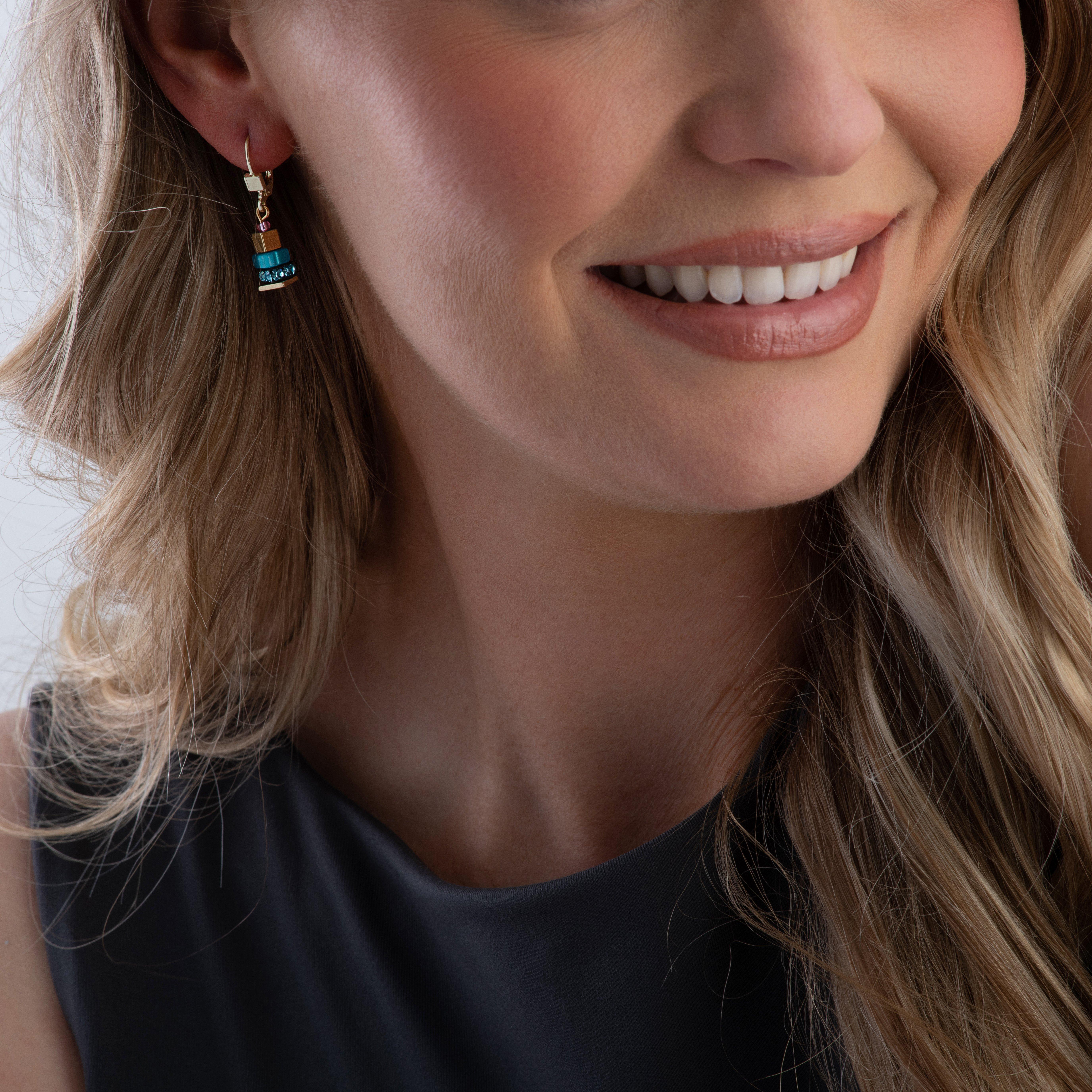 Exuding majestic detailing and playful colour, these Coeur De Lion Yellow Gold Tone GeoCUBE Drop Hoop Earrings are glistening with contemporary allure and are a must-have for your jewellery collection.