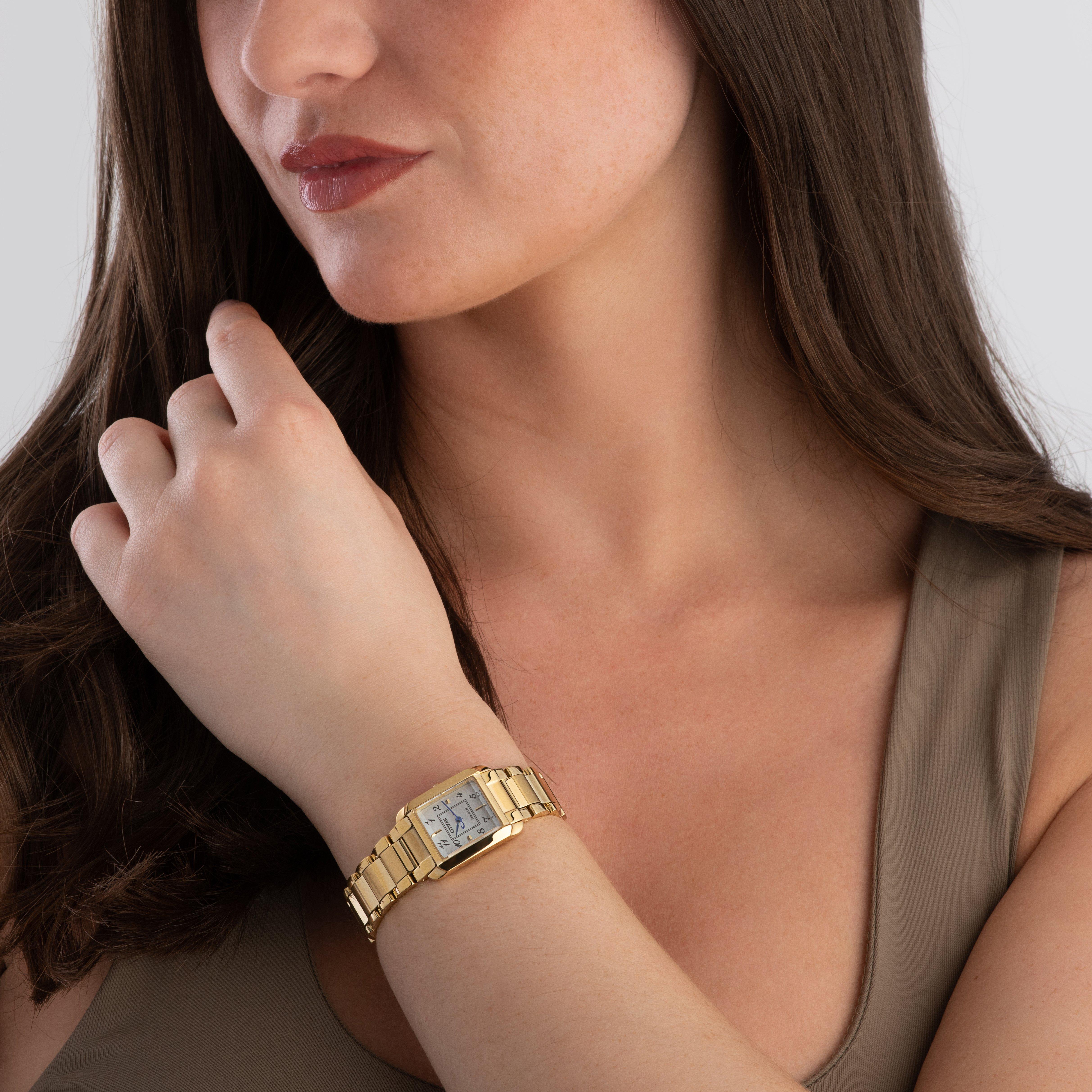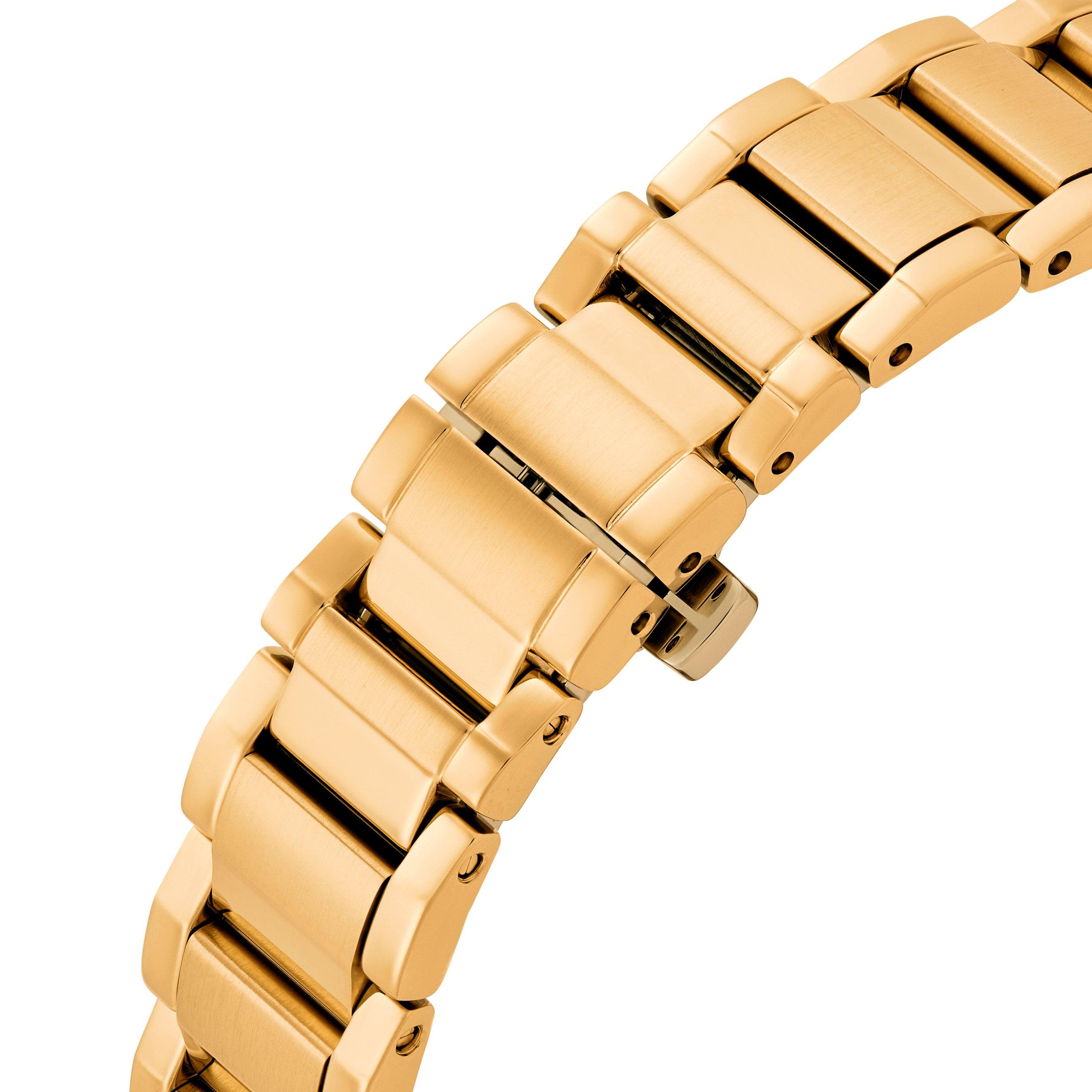 - Presented on a yellow gold tone stainless steel bracelet and fastened with deployment clasp with push buttons