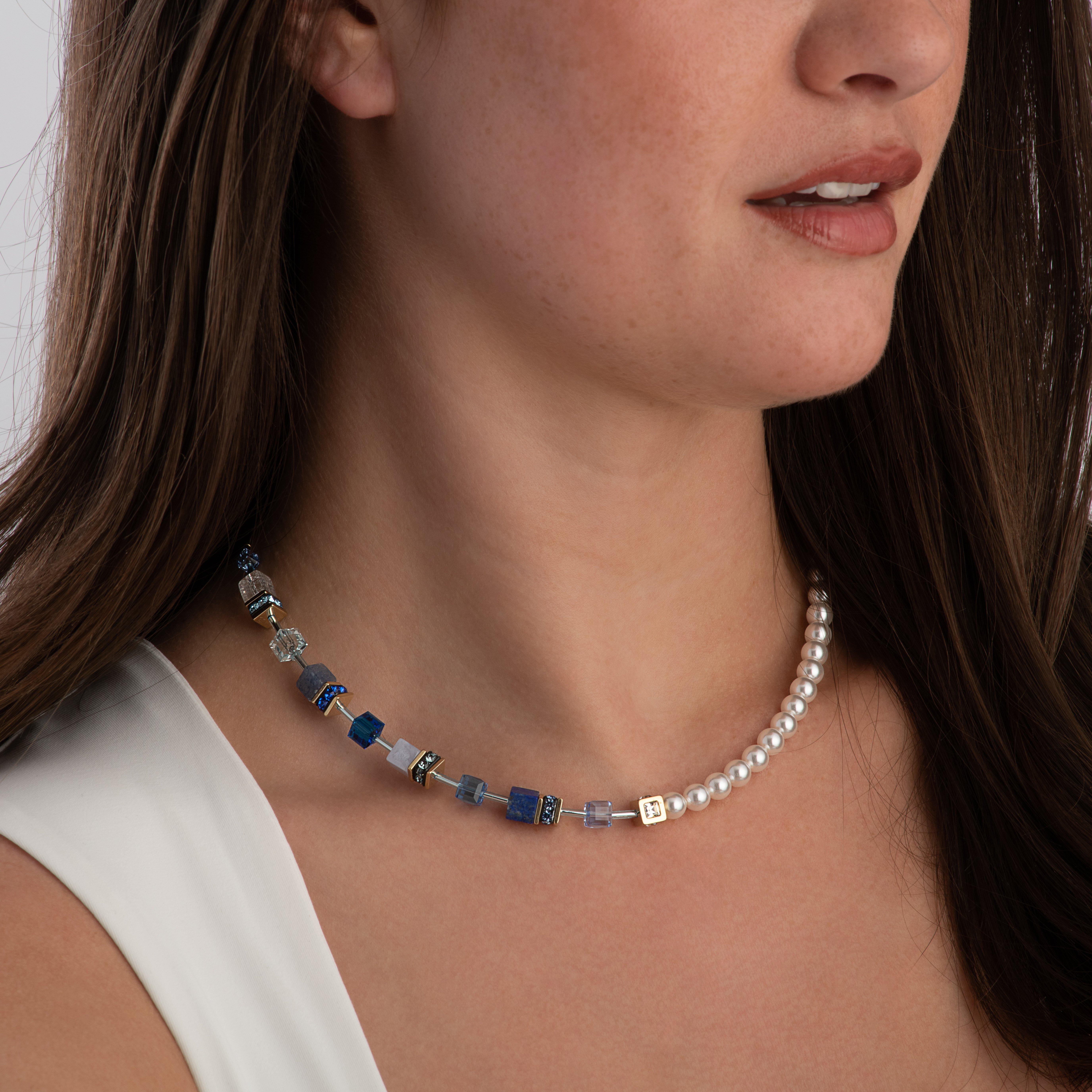 Indulge in exquisite craftsmanship with this Coeur De Lion GeoCUBE Precious Fusion Yellow Gold Tone Pearl Necklace. Seamlessly blending warmth, vibrant charm and classic elegance, this necklace is destined to captivate.