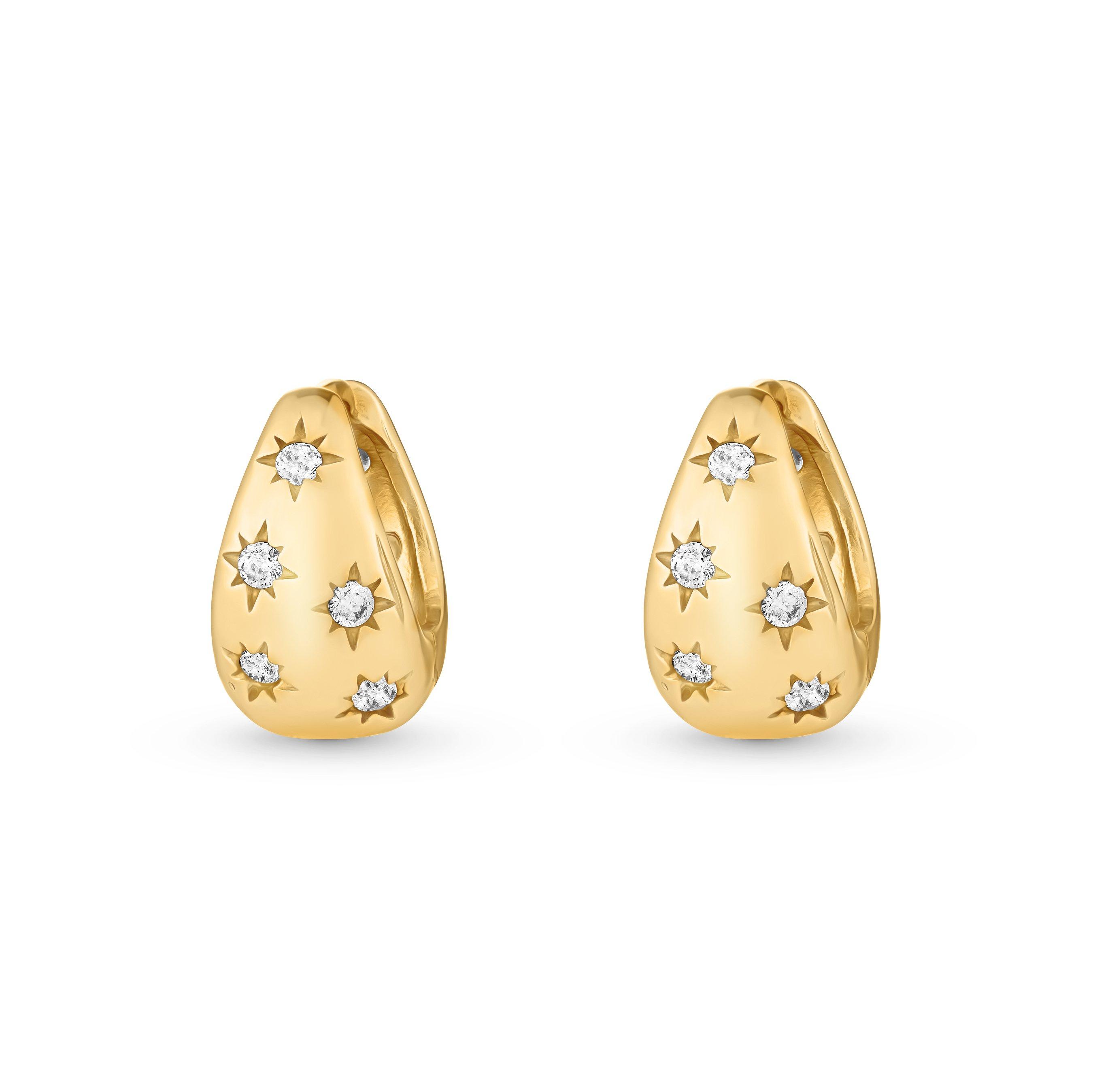 Add a celestial statement to your jewellery collection with these Yellow Gold Plated Cubic Zirconia Celestial Huggie Hoop Earrings, a must-have for your jewellery collection.