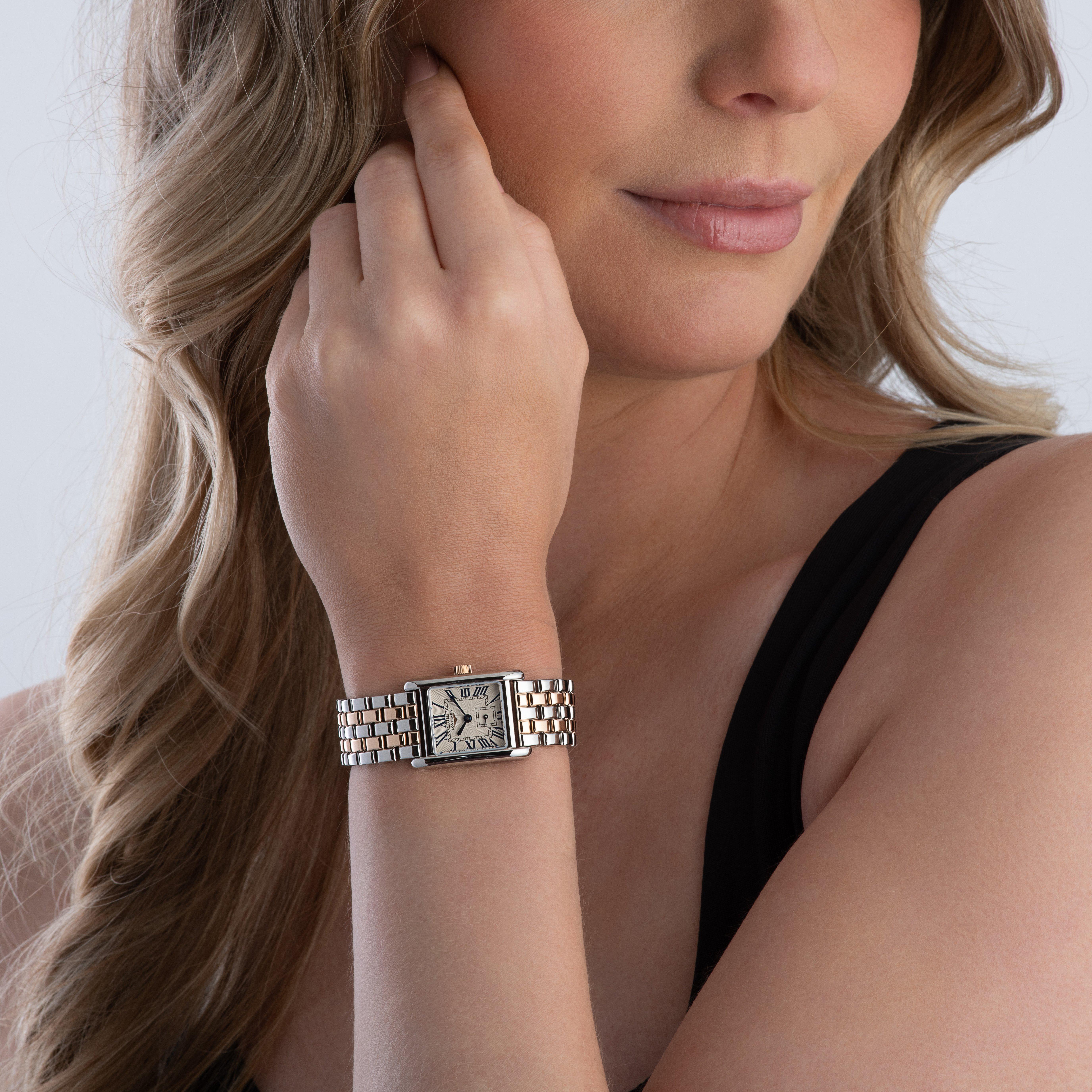 Take on a sleek and timeless sense of style with this Longines Mini Dolcevita 29mm Stainless Steel and 18K Pink Gold Ladies Watch. Crafted with stunning 18K pink gold detailing and a classic aesthetic, this timepiece radiates contemporary elegance and meticulous attention to detail.