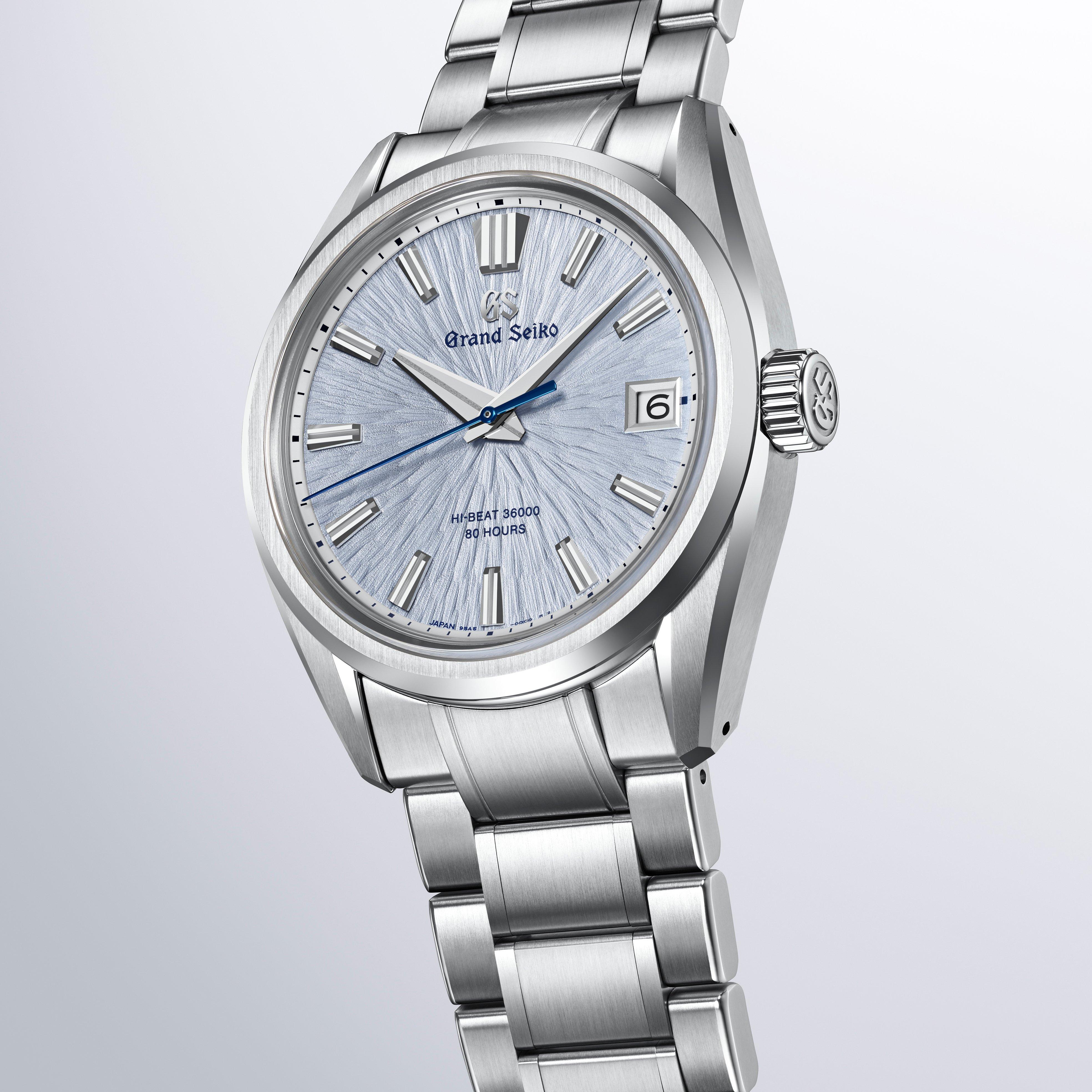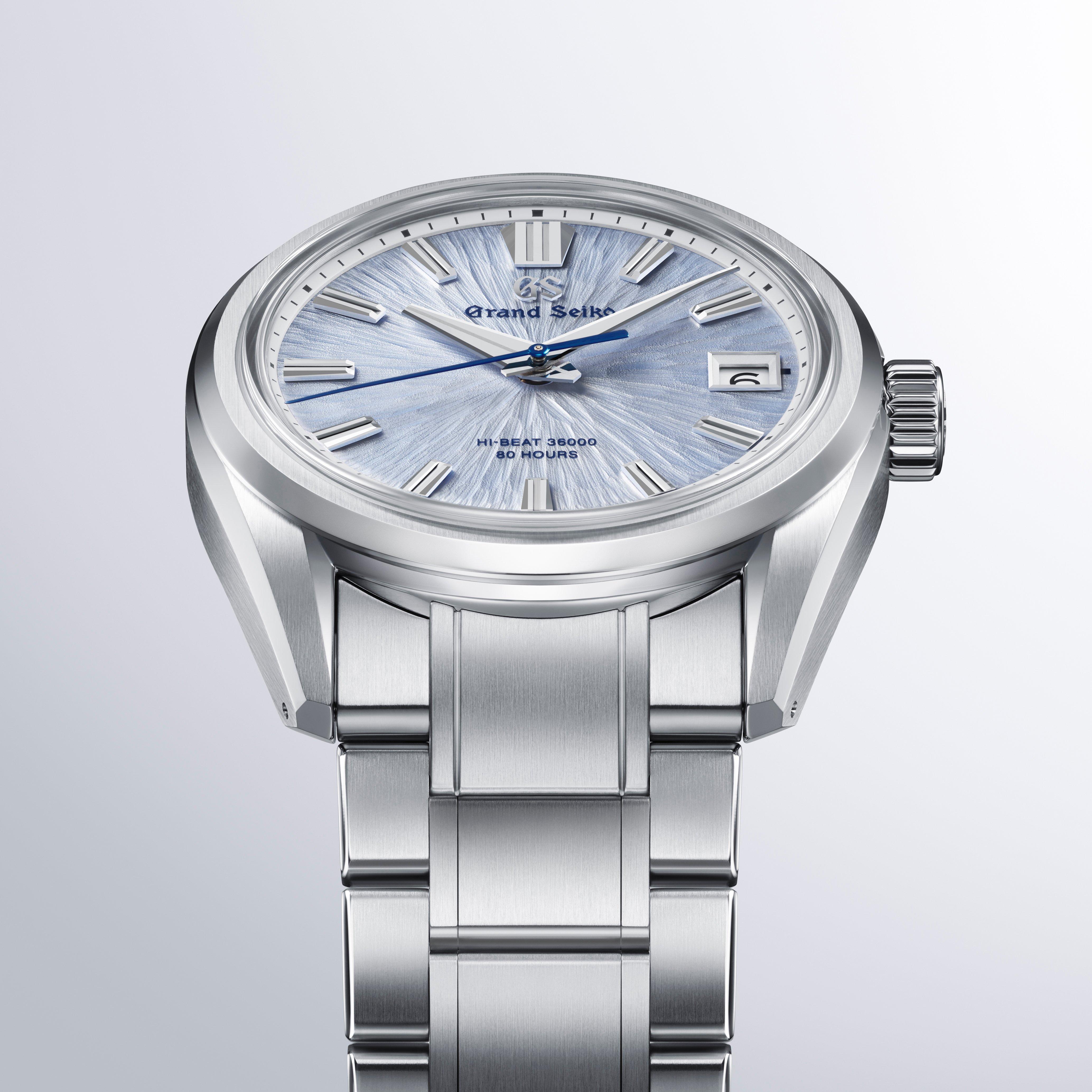 - Ice blue textured dial inspired cherry blossoms with hands and indexes