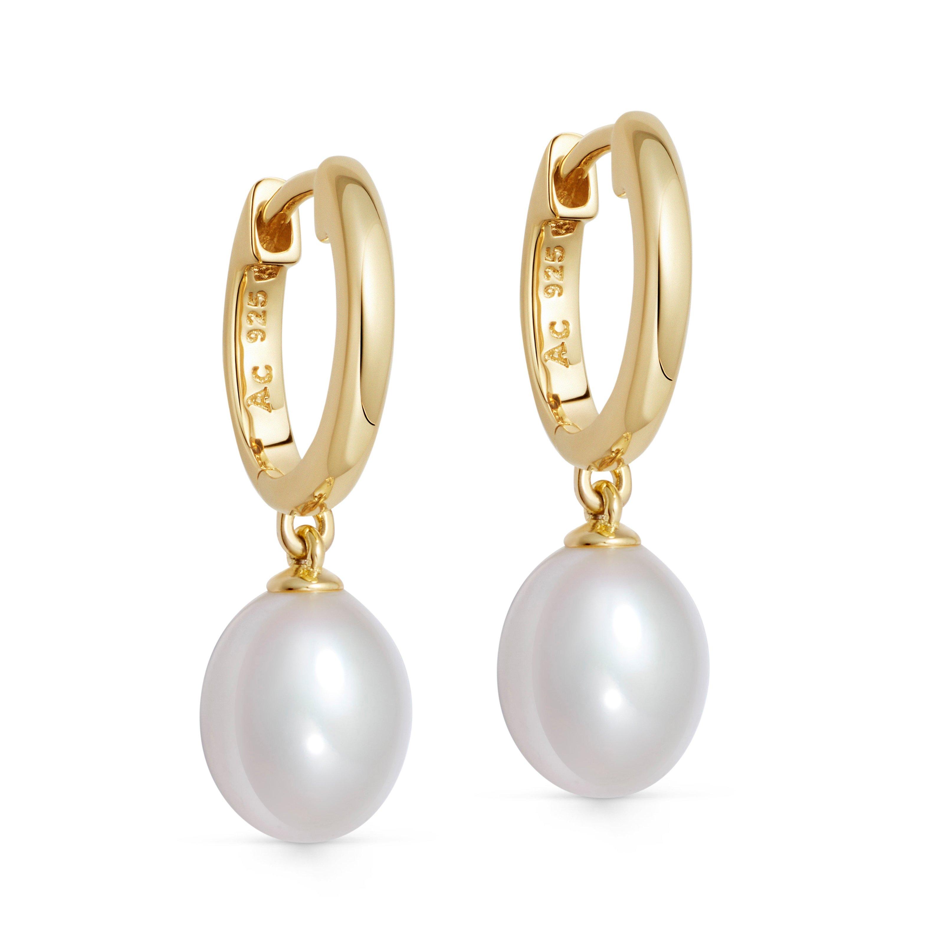 Astley Clarke Celestial 18ct Yellow Gold Vermeil Freshwater Pearl Drop Huggie Earrings