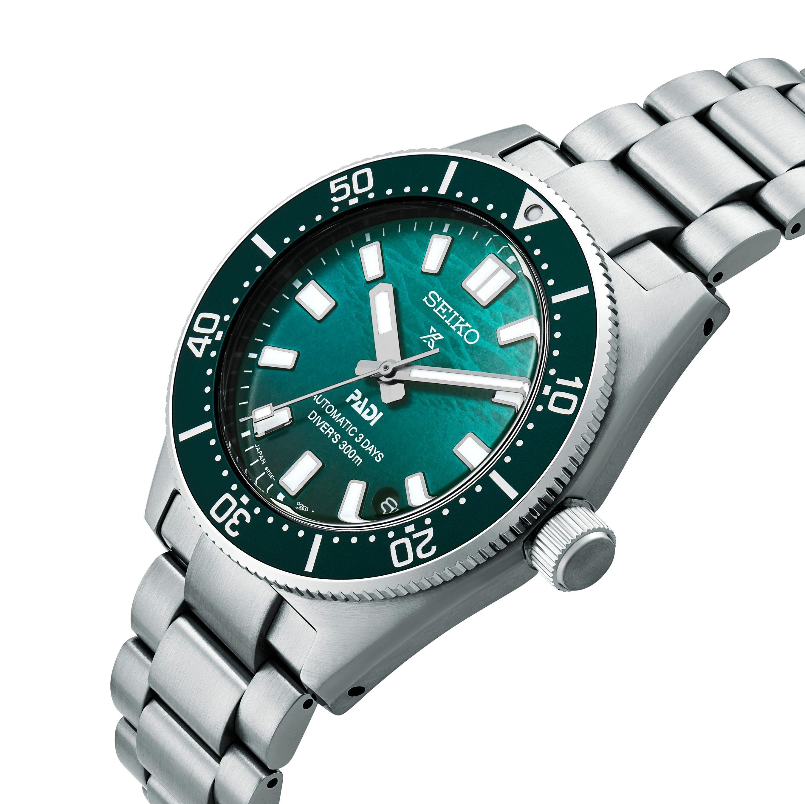 Created in collaboration with PADI, the world’s most recognised diver’s training organisation, this Seiko Special Edition Prospex 1965 Heritage Diver’s PADI 40mm Automatic Men’s Watch combines professional performance with high-tech features to deliver the ultimate underwater companion.