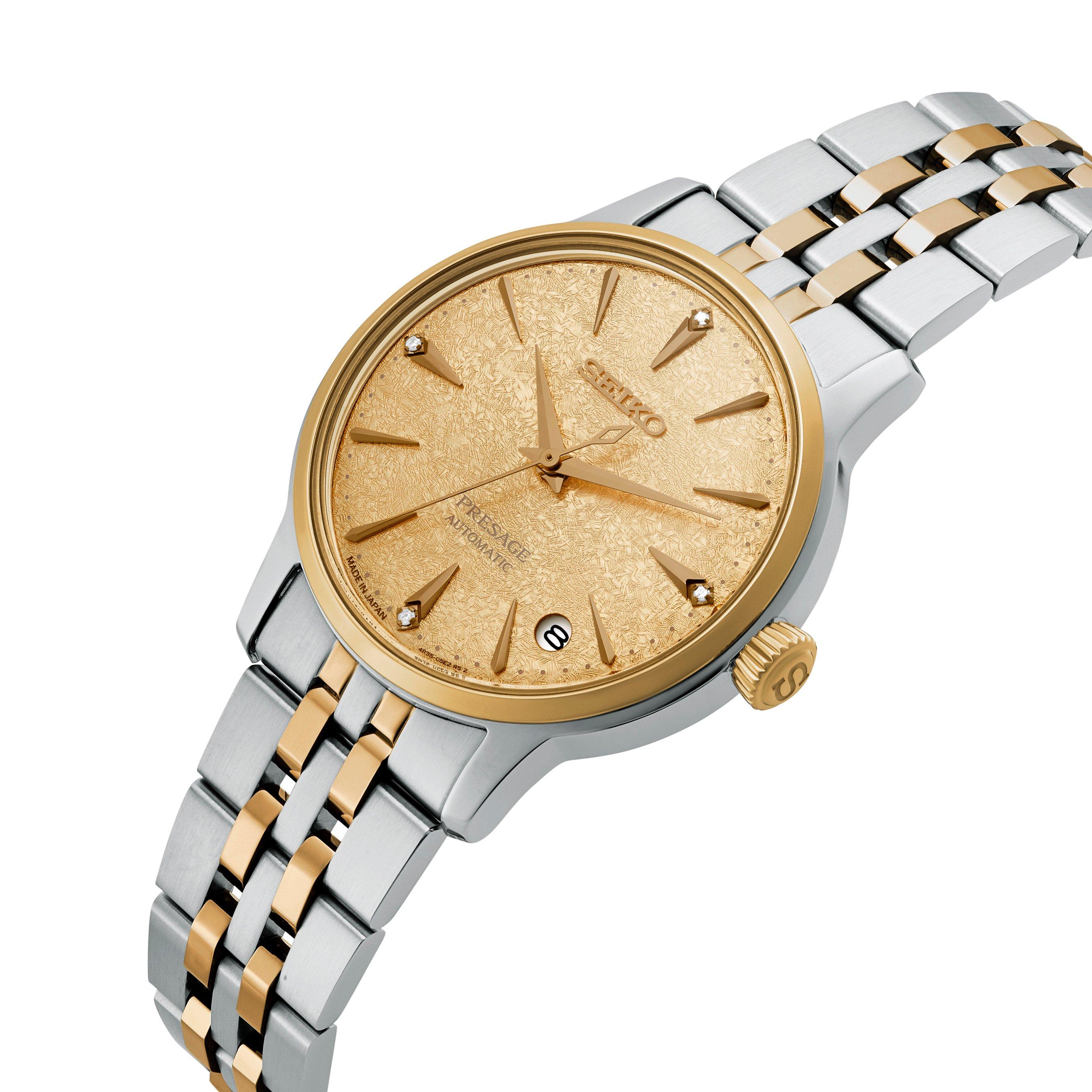 Inspired by the sparkling allure of classic cocktail culture, this Seiko Presage Cocktail Time 34mm Stainless Steel and Yellow Gold Tone Ladies Watch is a masterclass in understated glamour and Japanese craftsmanship.