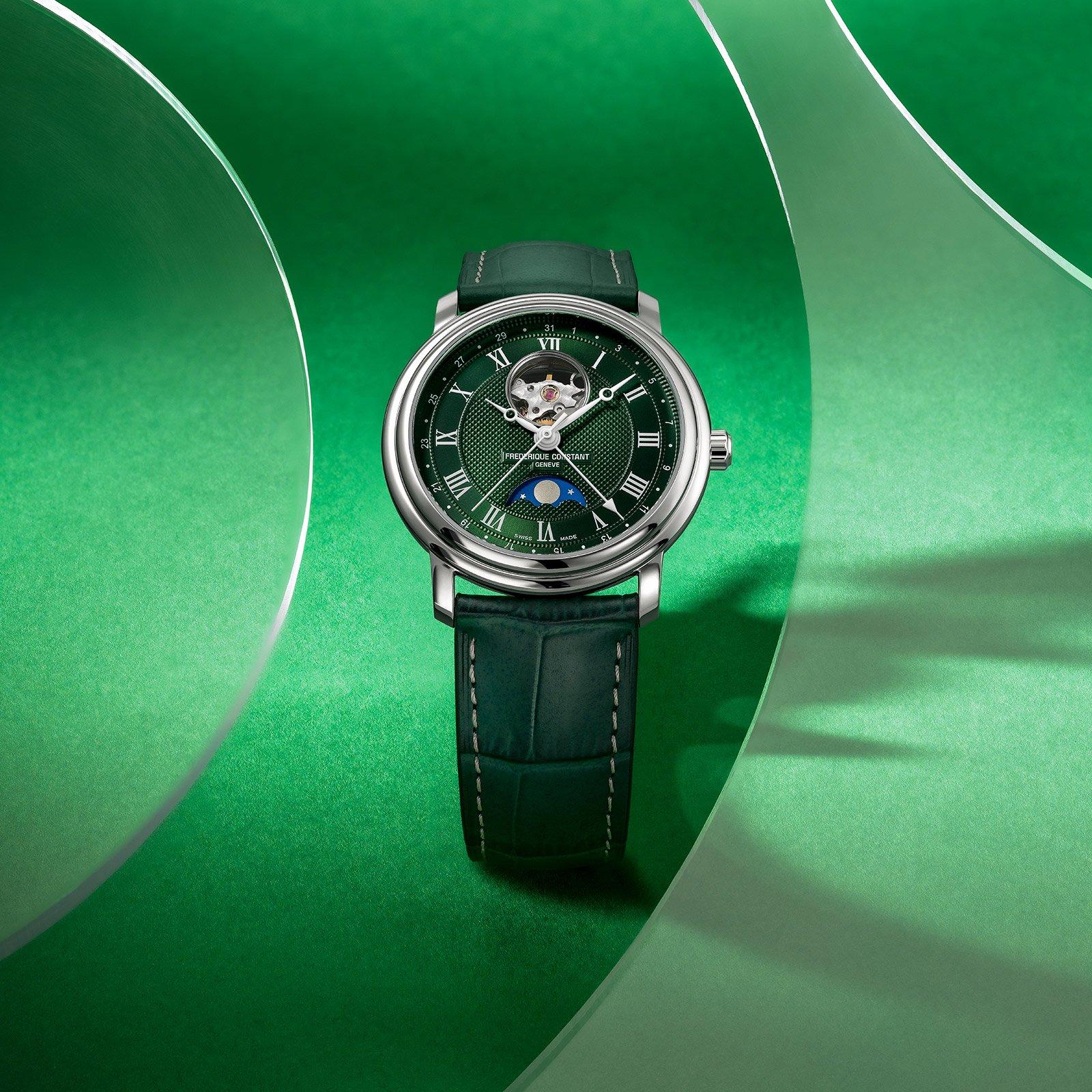 Where traditional craftsmanship meets confident style, this Frederique Constant Classics Heart Beat Moonphase Date 40mm Automatic Men’s Watch reveals its power with every glance.