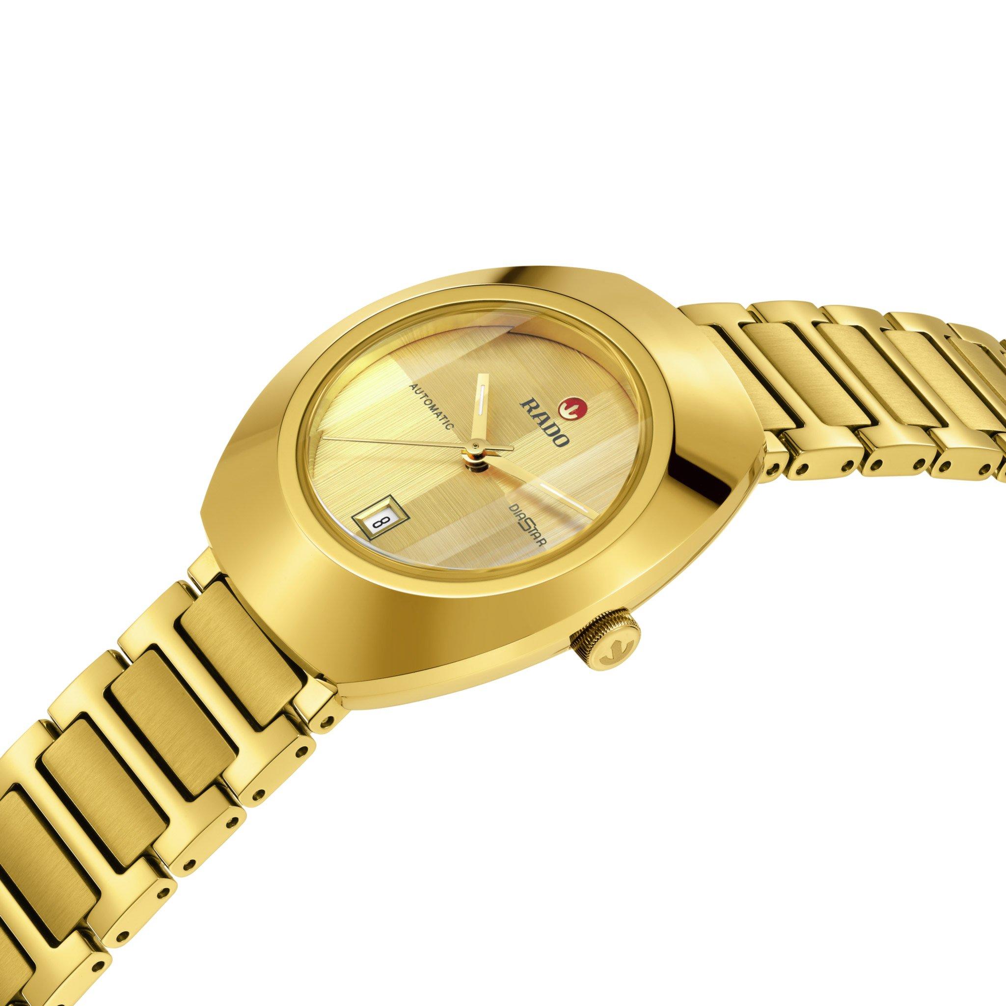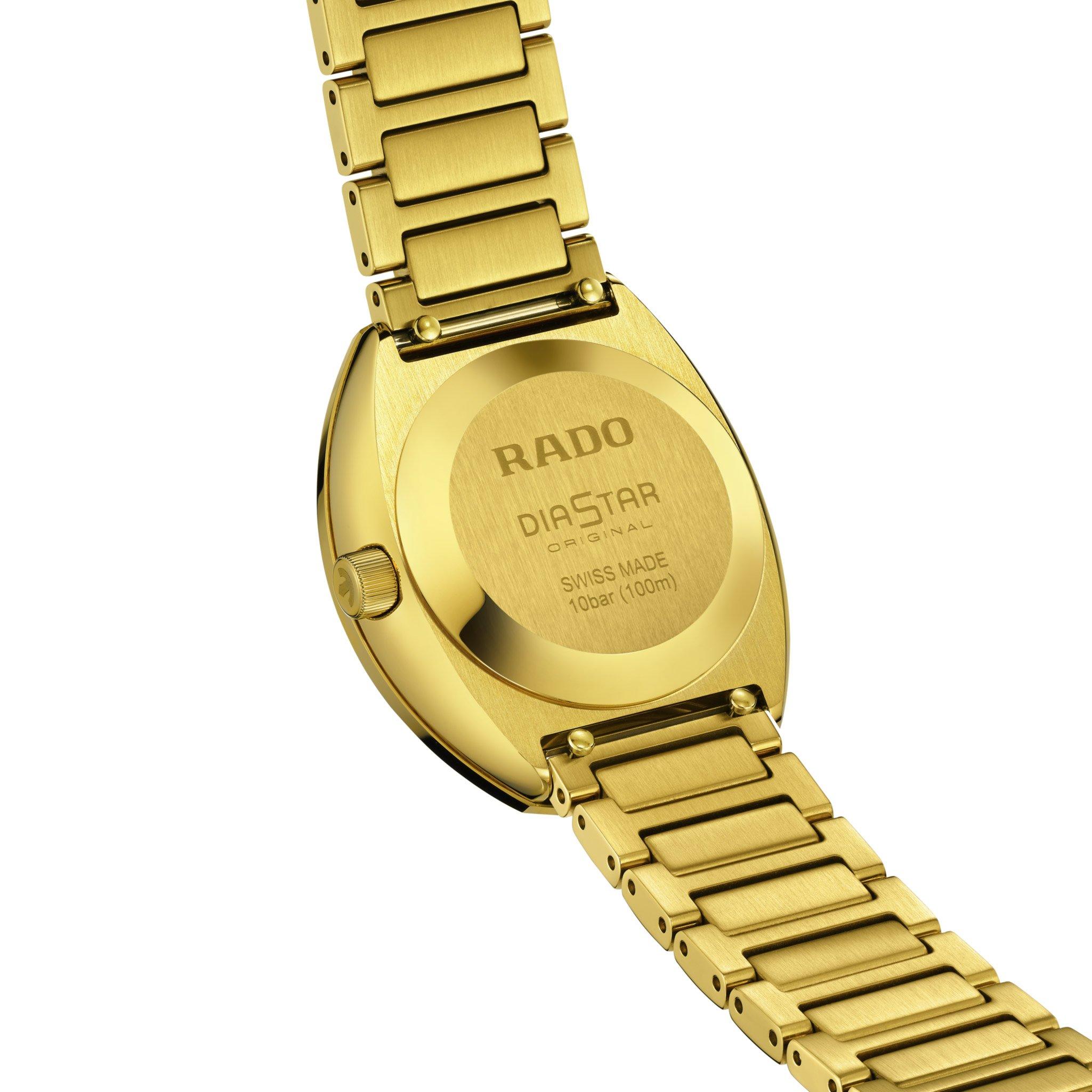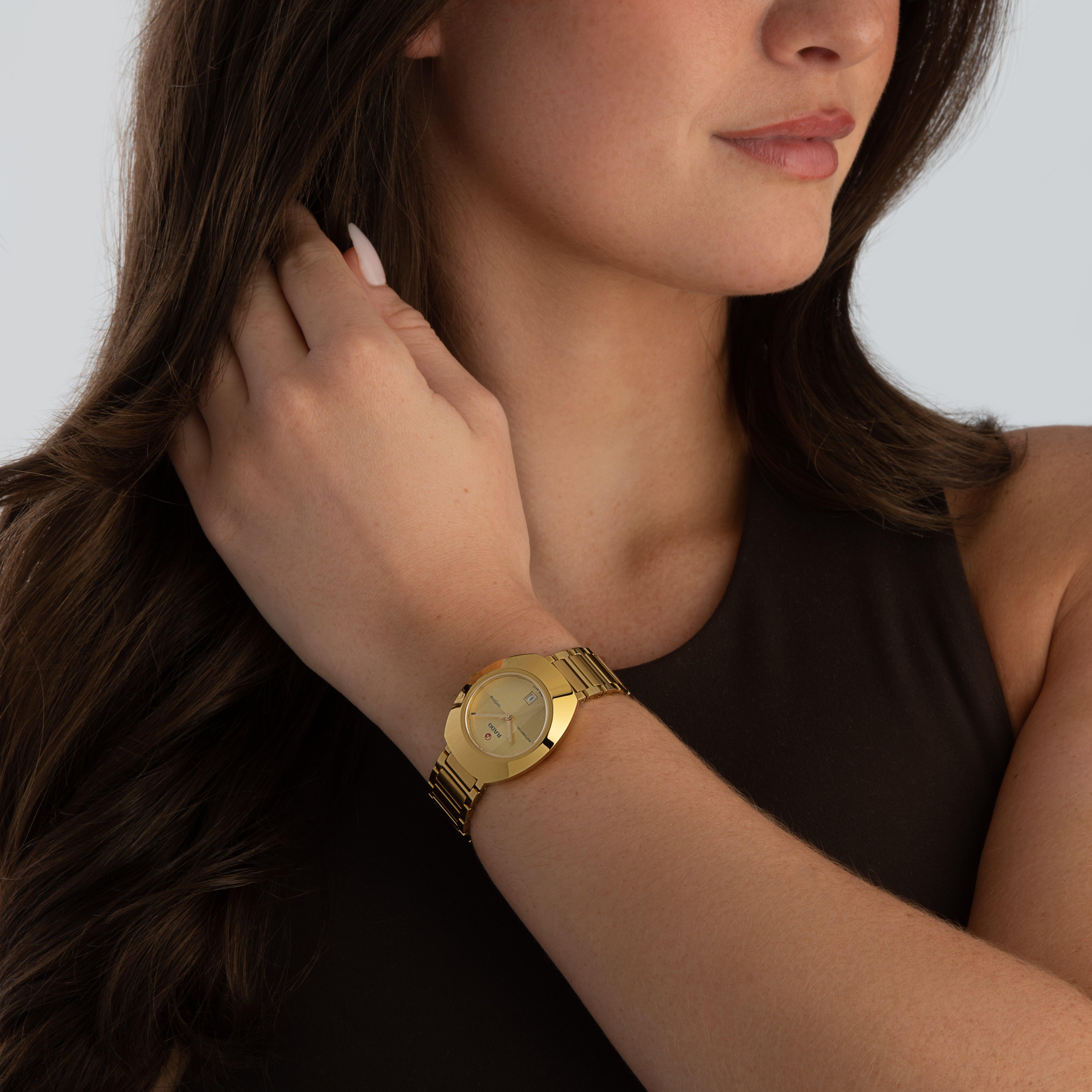 Step into timeless sophistication with this Rado Diastar Original 30mm Yellow Gold Plated Automatic Ladies Watch, a symbol of enduring design and Swiss precision.