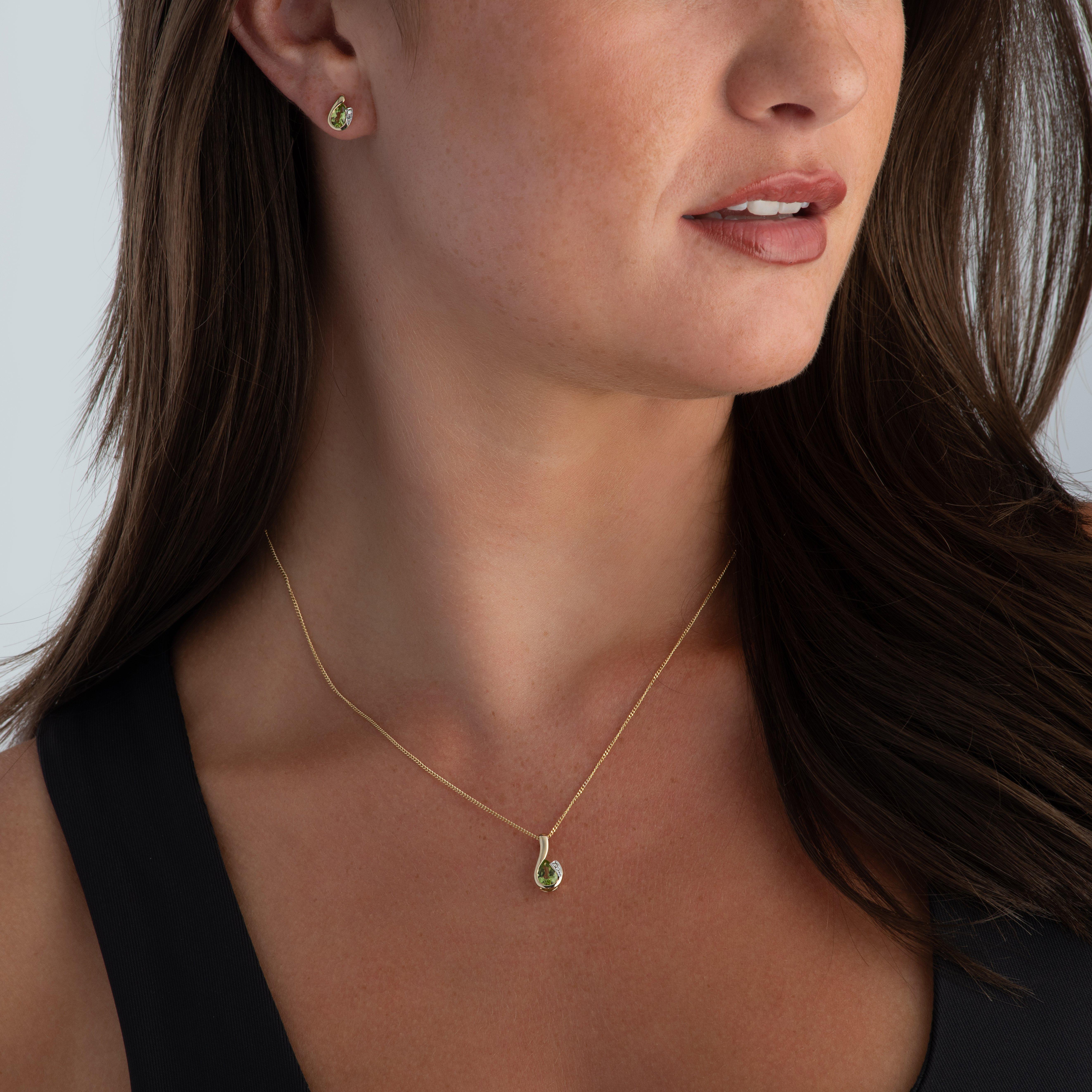Adorned with a captivating fusion of modern luxury and timeless beauty, these 9ct Yellow Gold Diamond and Peridot Earrings are destined for the spotlight.