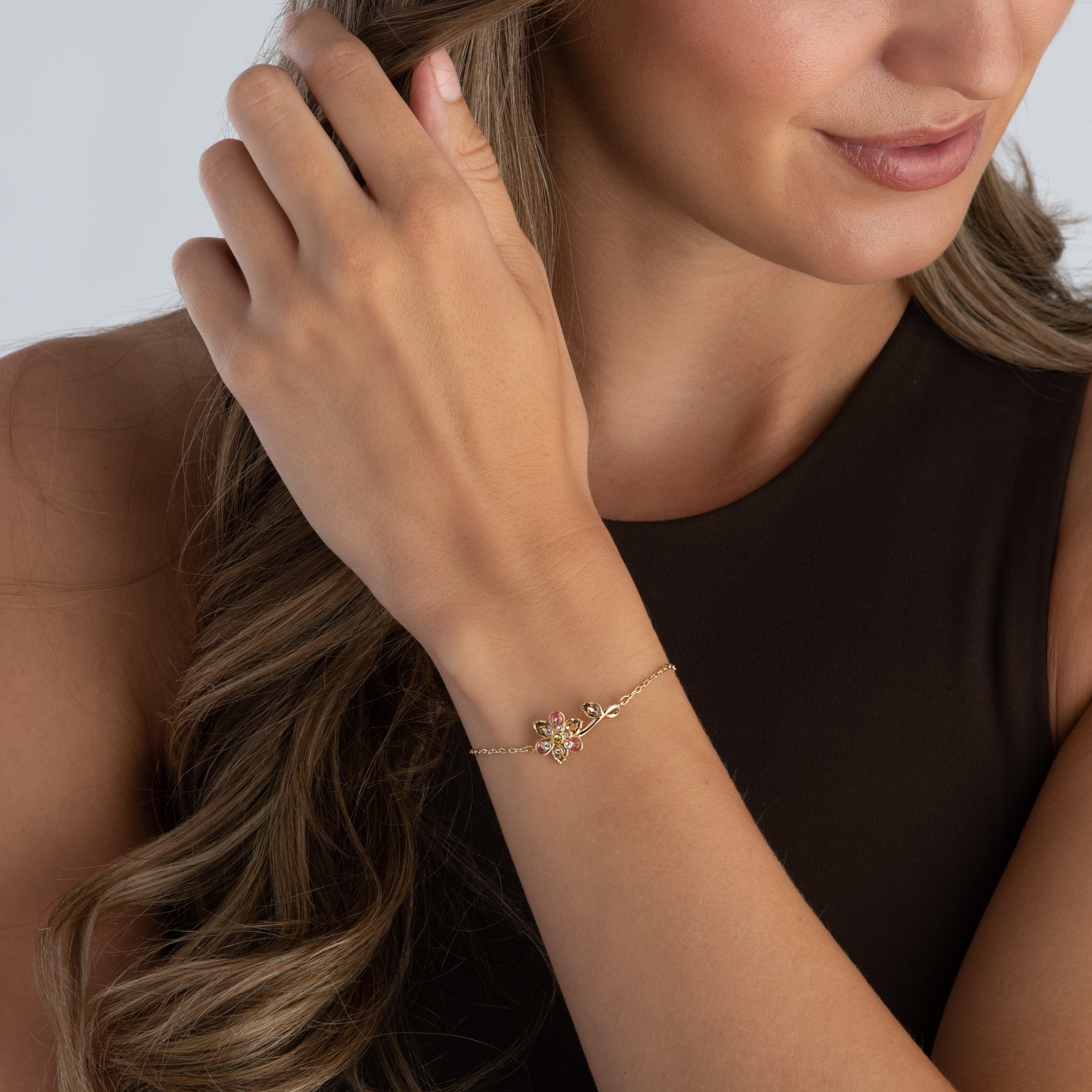 Swarovski Idylia Yellow Gold Tone Crystal Flower Bracelet