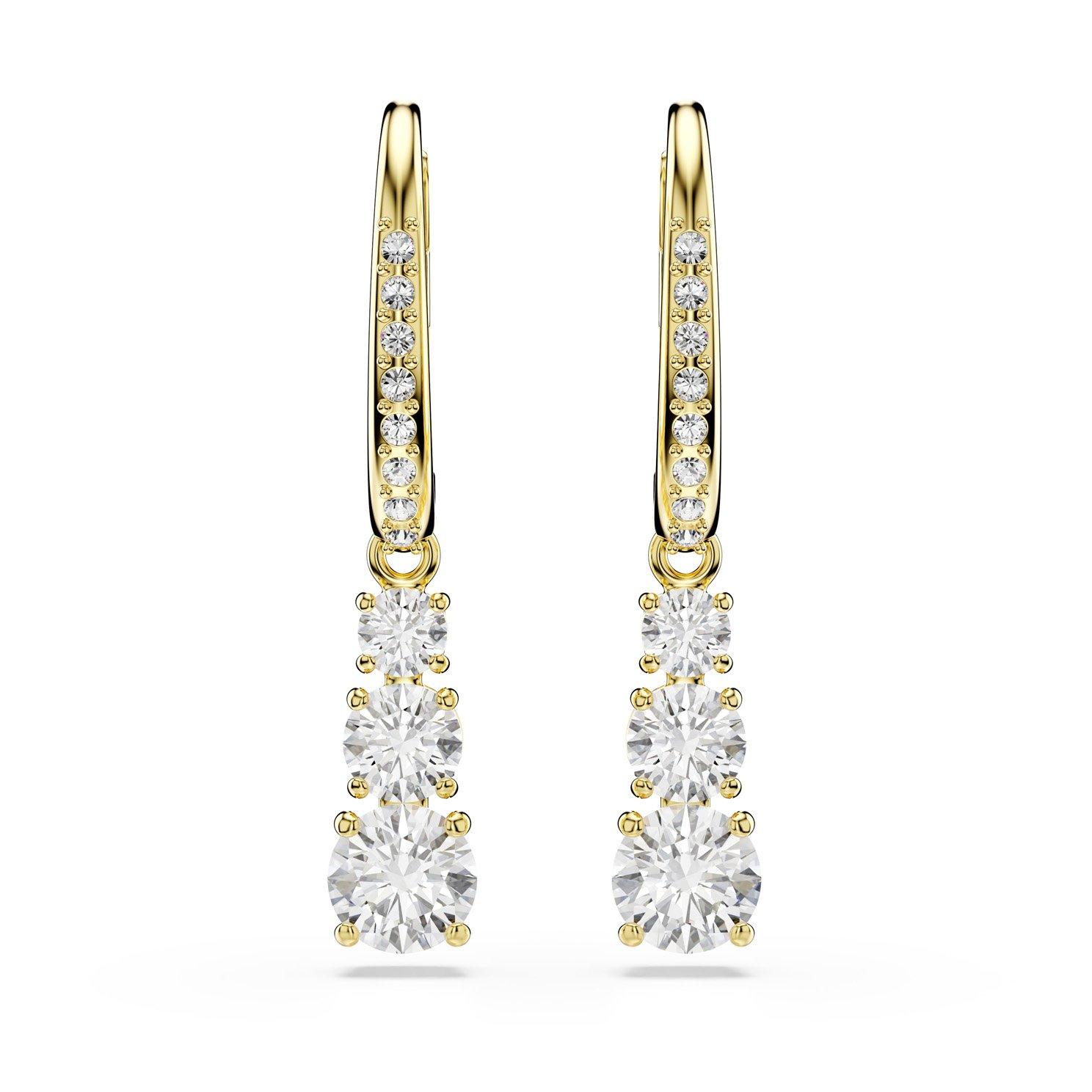 Add a touch of refined brilliance to your look with these Swarovski Stilla Yellow Gold Tone Zirconia Drop Earrings, catching the light with every movement.